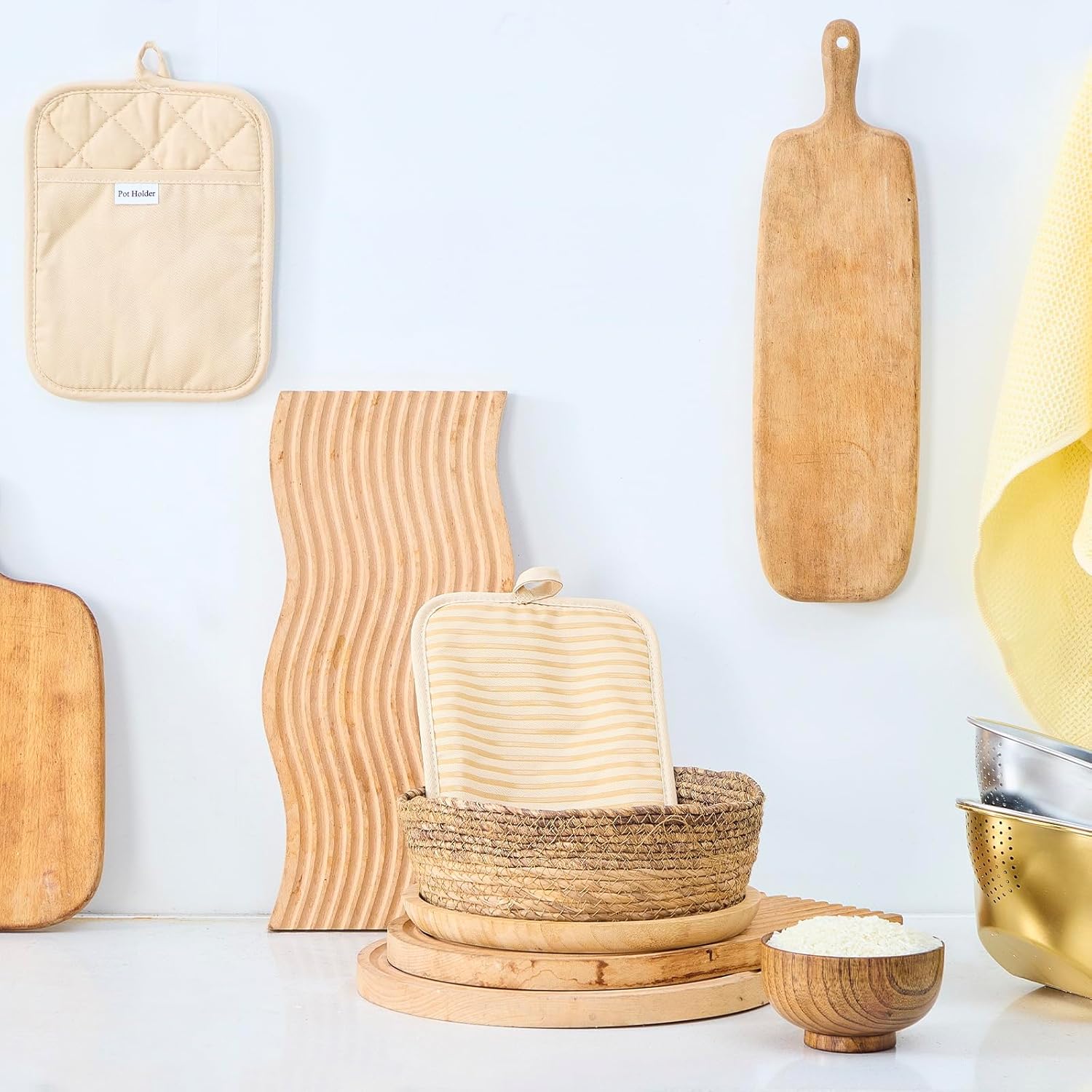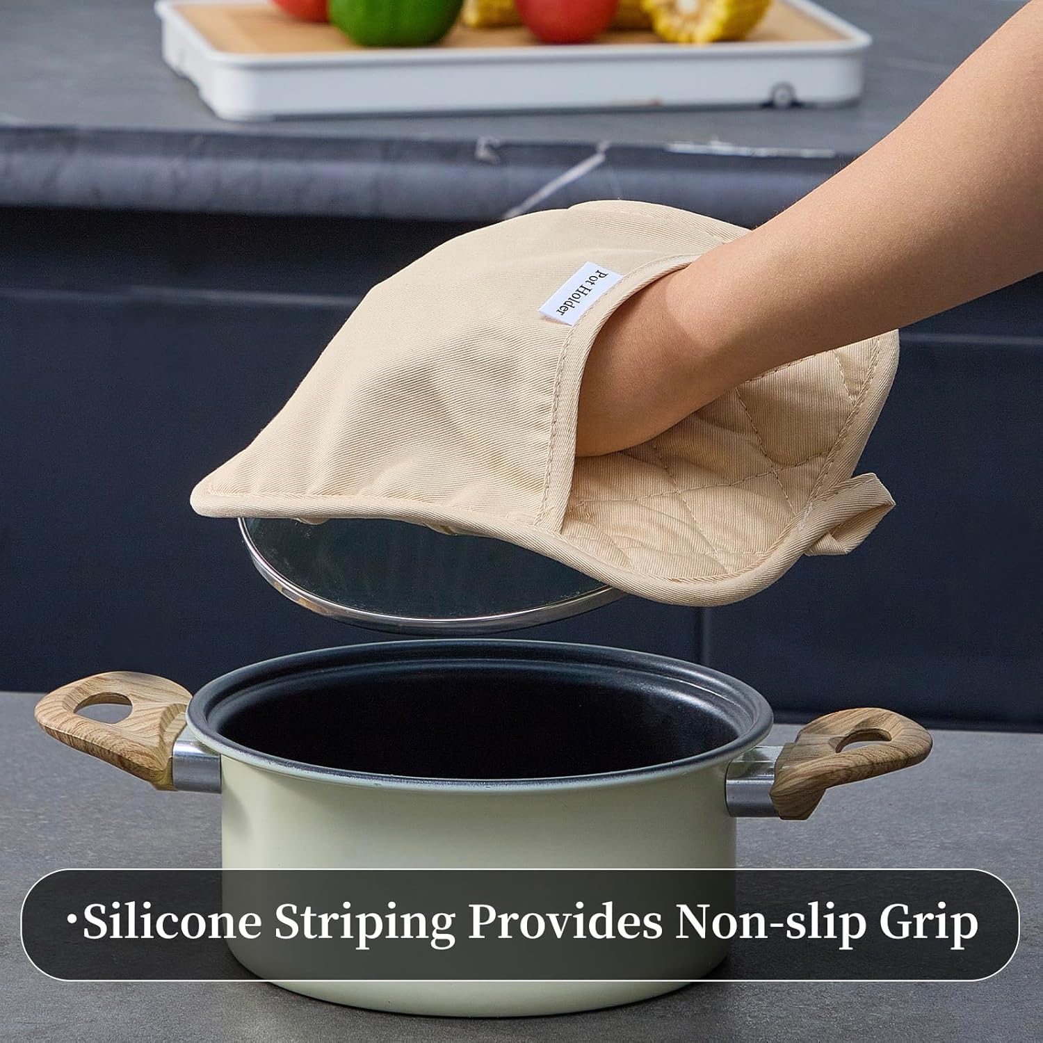 Kitchen Everyday Basic Pot Holder Heat Resistant Coaster Soft Silicone Water Resistant Pot Holder Set Oven Mitts with Pocket, 2 Piece Set, 7"x9" Beige