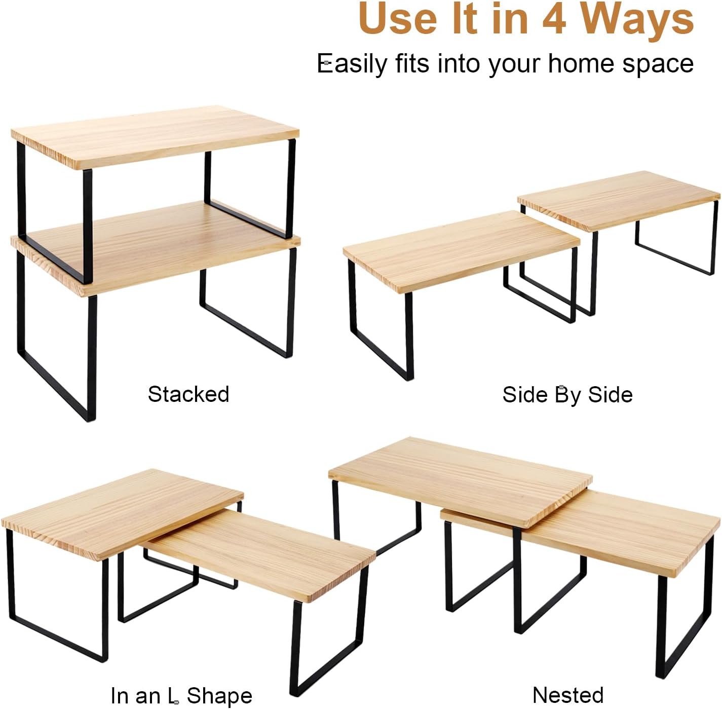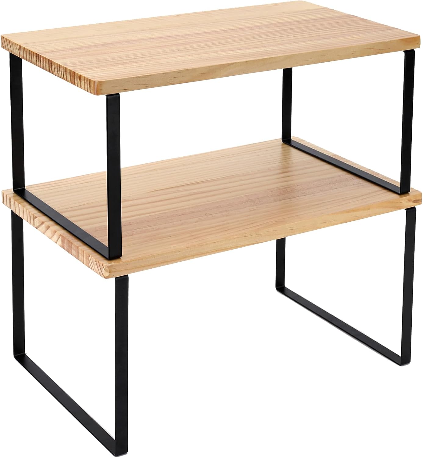 Bamber Large Cabinet Shelf Organizers Solid Wood Spice Rack Organizer for Cabinet Kitchen Countertop Storage, 16.5x10 Inches, Set of 2