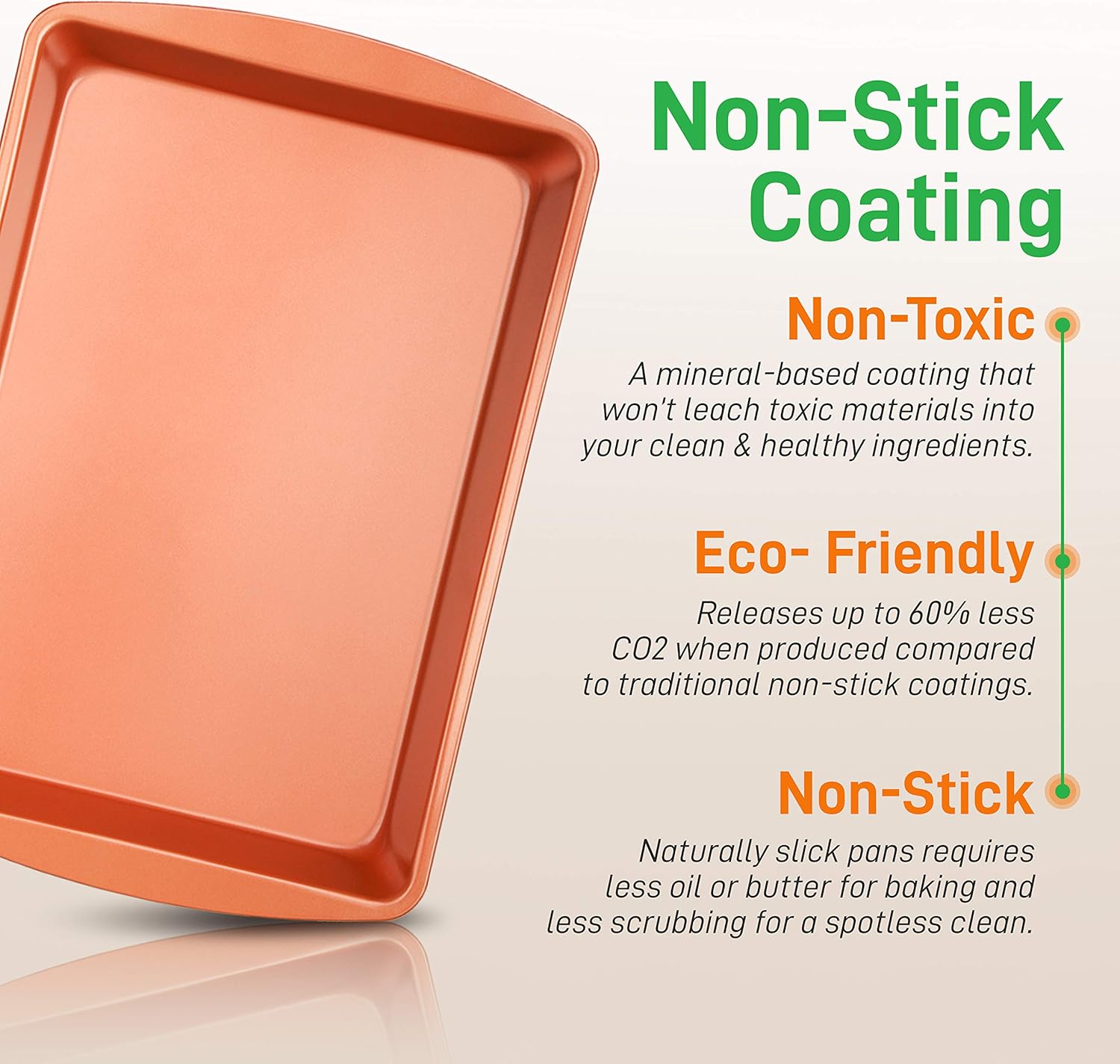 - SPACE-SAVING STACKABLE DESIGN - Made to conserve kitchen space, this non-stick baking set features a stackable tray design. Fully compatible with both standard and convection ovens, these pans are also suitable for use in refrigerators and freezers.