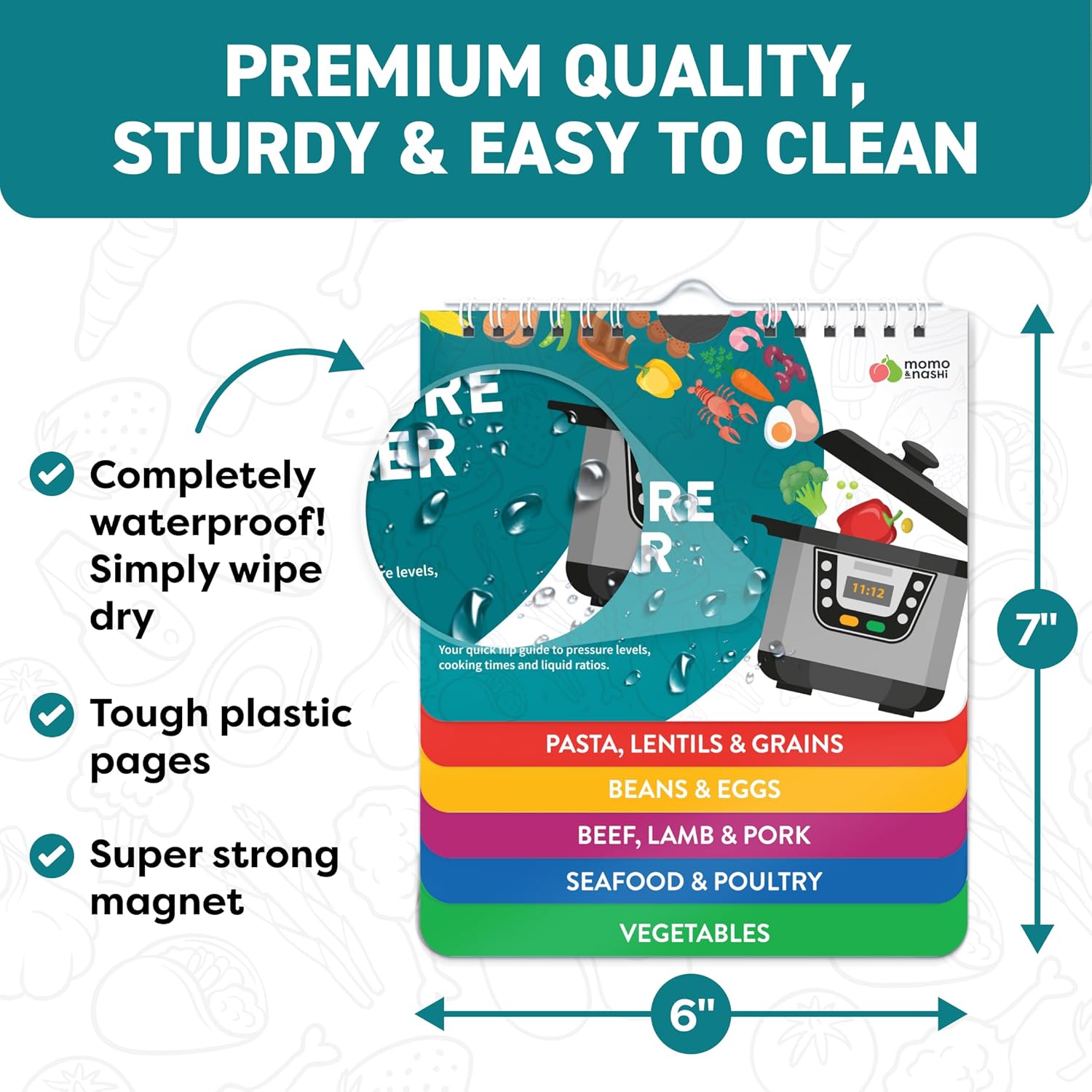 - Instant Pressure Cooker Magnet contains over 100 food entries in 6 sections, providing simple, clear instructions with cooking times, liquid needed, pressure level & release mode. Also includes instant pot high-altitude cooking guide & an extensive vegan-friendly section. Simplify complex dishes & start preparing healthy meals for you and your family.