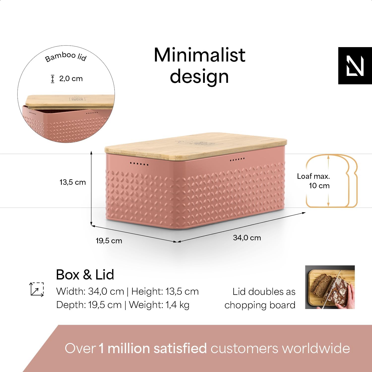 - MINIMALIST DESIGN: Our Bread Bin "Glæde" by LARS NYSØM is a minimalist piece for your kitchen and a real all-rounder that keeps your favorite pastries fresh for a long time. Perfect for storing bread, onion and potatoes. 13.4 x 7.3 x 5.3 In.