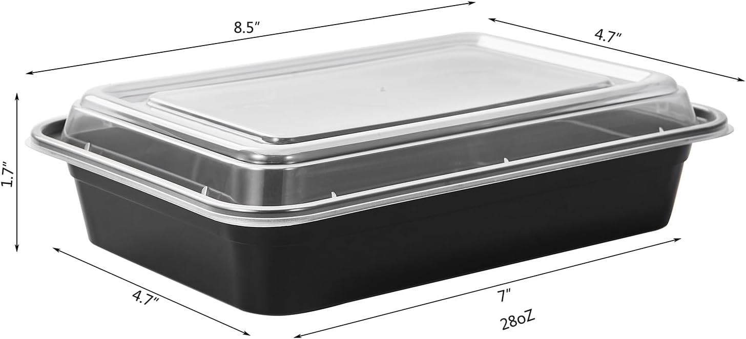 150 Pack Meal Prep Plastic Food Storage Containers With Lids 28 oz 1 Compartment Black Rectangular To Go Lunch Prepping Boxes BPA-Free Microwavable Freezer Safe Stackable (Formerly FULING)