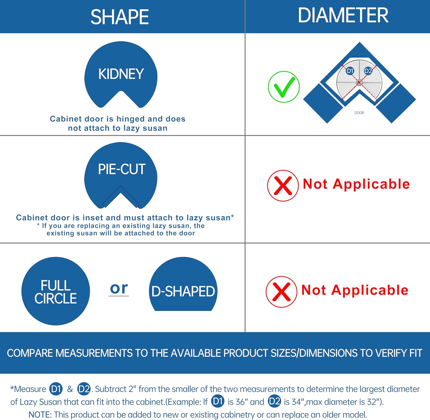 - High Quality Service: Our lazy susan for cabinet excellent quality enable us to promise If for any reason you decide that this corner cabinet lazy susan is not for you, send 1 simple email and receive a 100% money-back refund. Any questions, please feel free to contact us, we will deal with it within 24 hours.