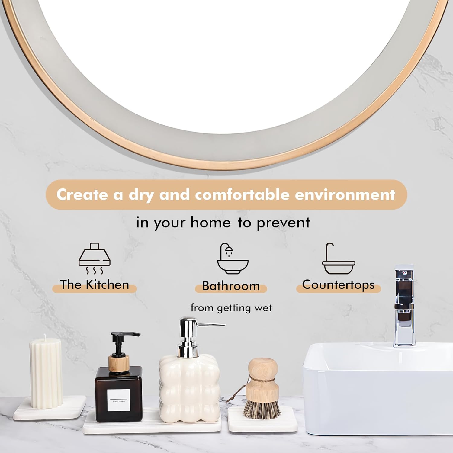 - 【Fast Water Absorption】The fast drying stone is made of diatomaceous, which can quickly absorb water and dry in a few minutes to keep your bathroom or kitchen countertop dry and tidy.