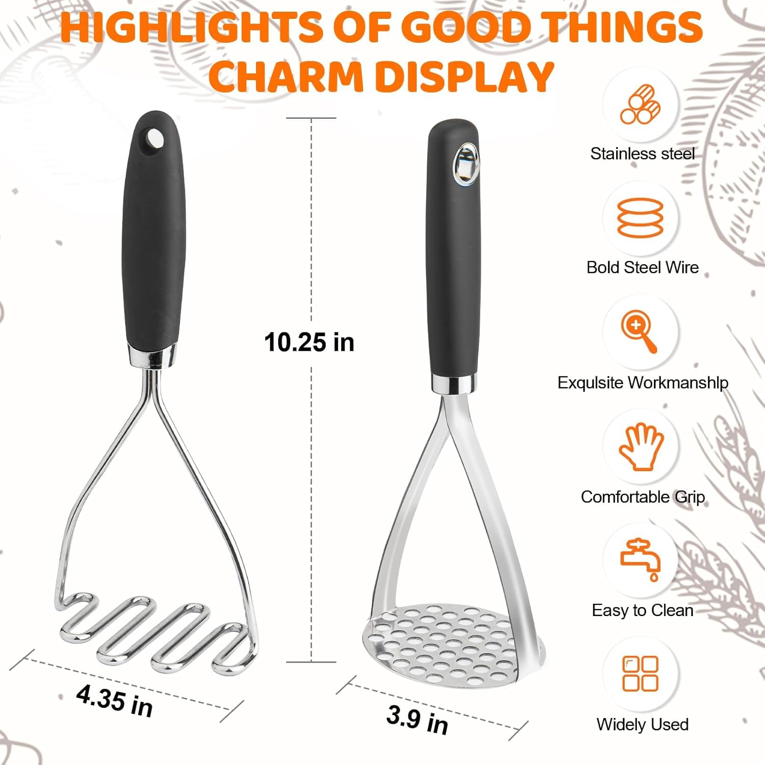 - β CHOOSE HIGH-QUALITY MATERIALS: 5mm food grade high-quality stainless steel wire is used to make the head of the potato masher, which is resistant to stains, corrosion, deformation, rust, smoothness, and durability.