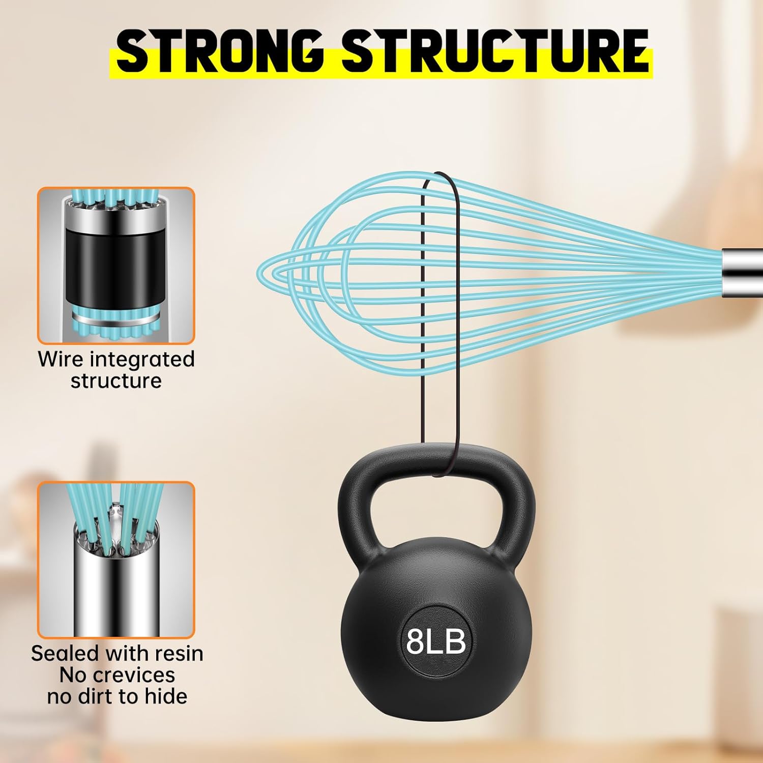 - 484ºF High Heat-Resistant: Feature BPA free silicone wires. 1.65mm thickened wires coated in 0.3mm soft silicone makes it stronger and more durable. Great for stirring sauces and gravies while heating.