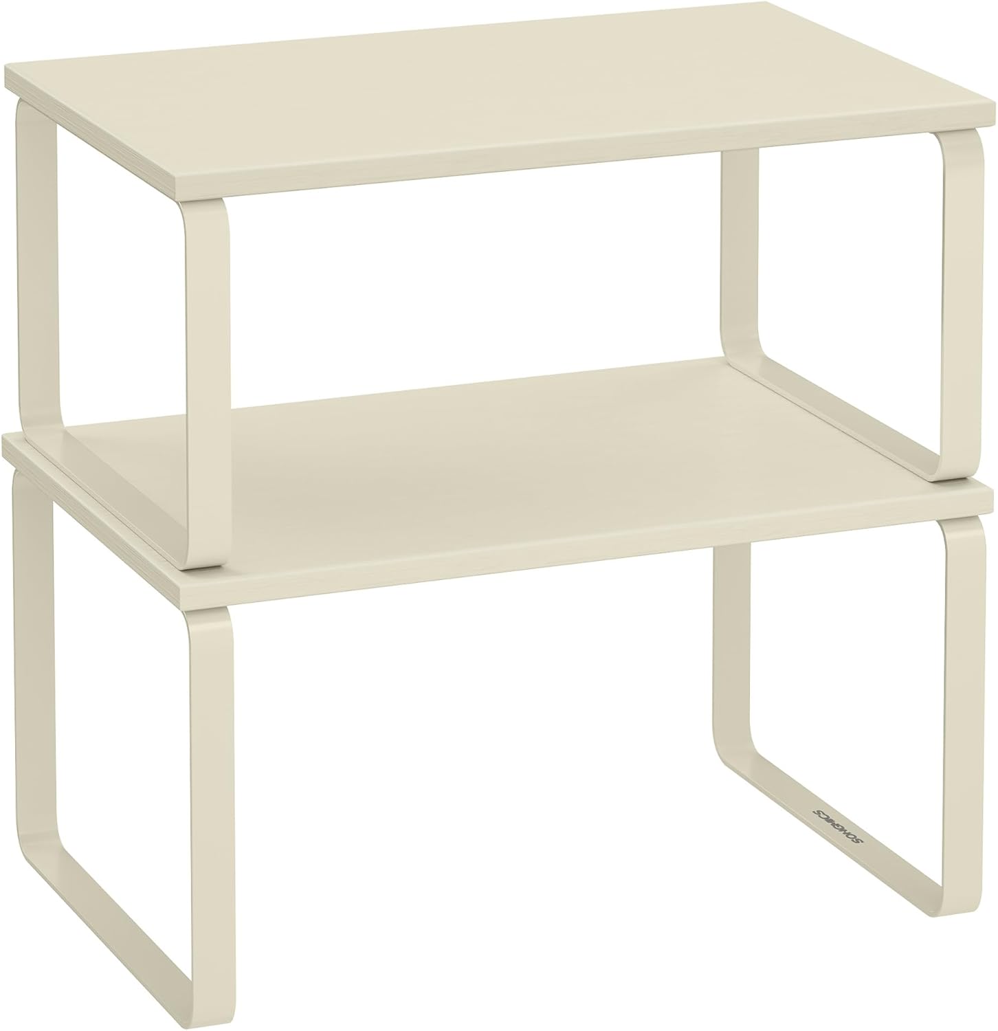 SONGMICS Cabinet Organizer Shelf, Set of 2 Kitchen Counter Shelves, Kitchen Storage, Spice Rack, Stackable, Expandable, Metal and Engineered Wood, Cream White UKCS002W02