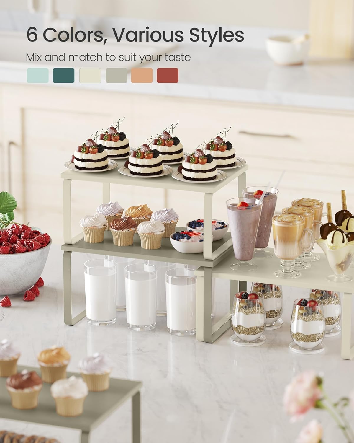 - [Versatile] They can be used in more than just the kitchen! Use them in the dining room as a way to elevate your table centerpieces, on your bedroom desk to organize your items, or even in your bathroom to neatly store your bathroom essentials