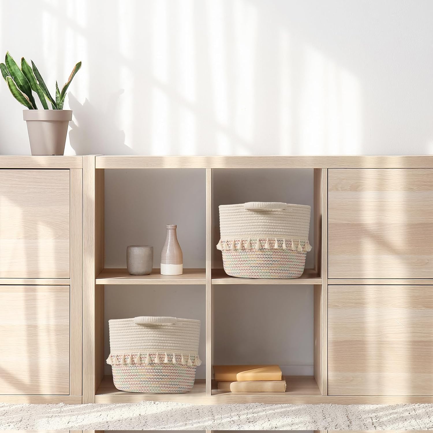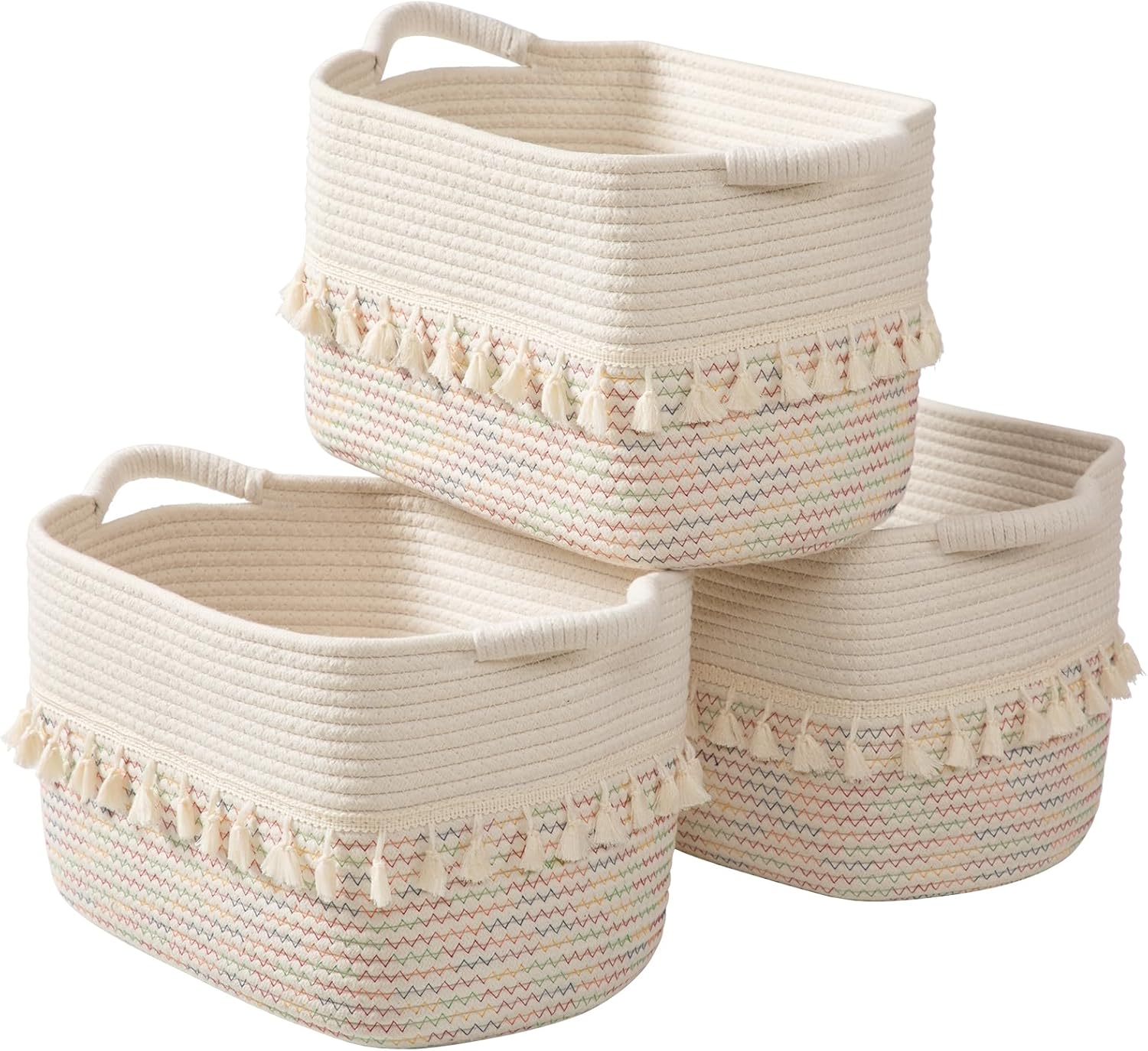 - Thoughtful gift idea: Our woven storage basket are soft, flexible, and durable, with a unique tassel design that sets them apart from the rest. Itβs a thoughtful gift for friends and family. The fabric storage are packaged nicely and ready to be gifted