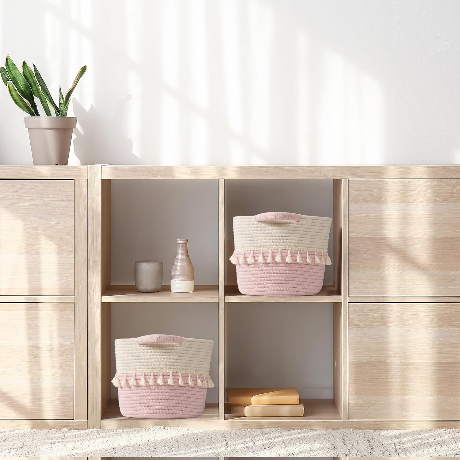 TeoKJ Storage Baskets 3 Packs, Storage Basket for toys,Towel, Storage Bins, Woven Basket for Shelves Bedroom Laundry Nursery, White & Pink