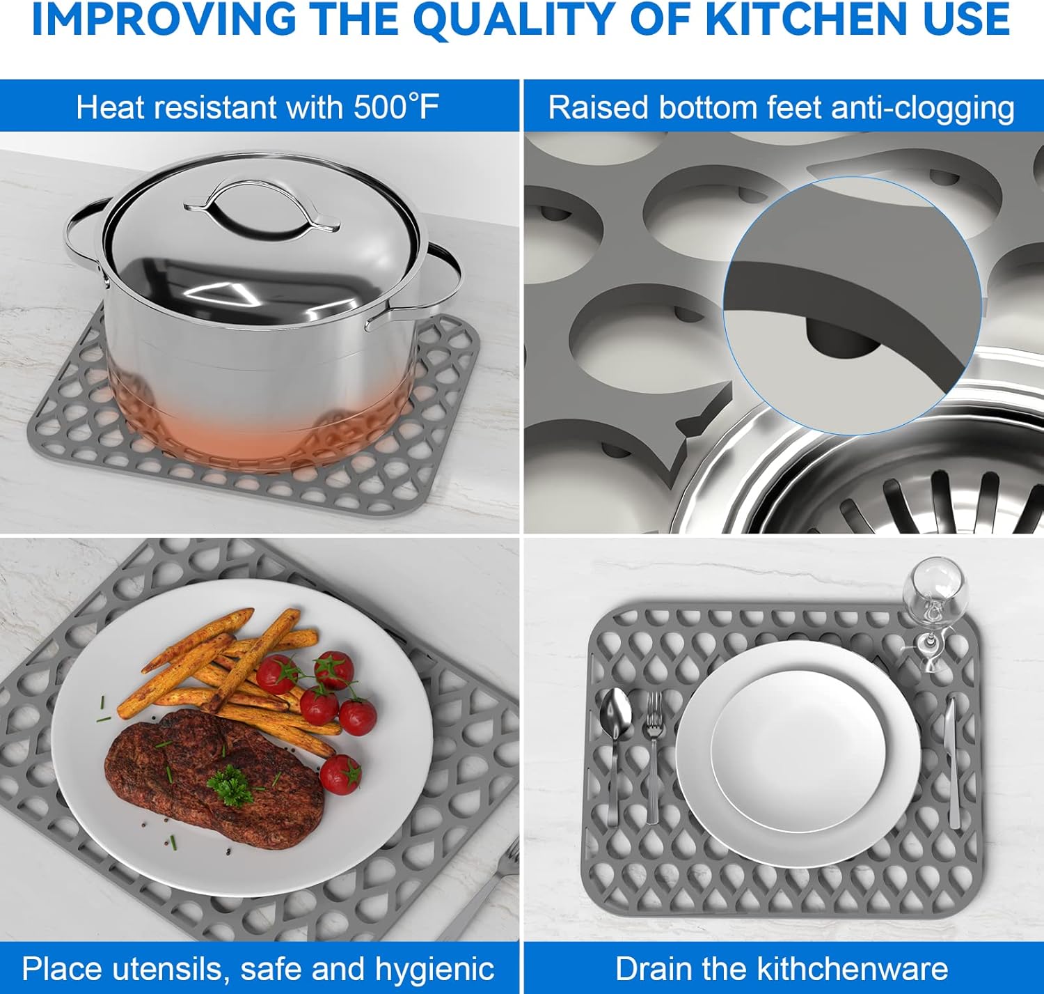 - 【Easy to Use】 Our kitchen sink mats and protectors can handle up to 500F, heat-safe silicone for placing pots and pans in the sink directly from the stove, the superior finish looks sleek, modern, and stylish in your kitchen sink.