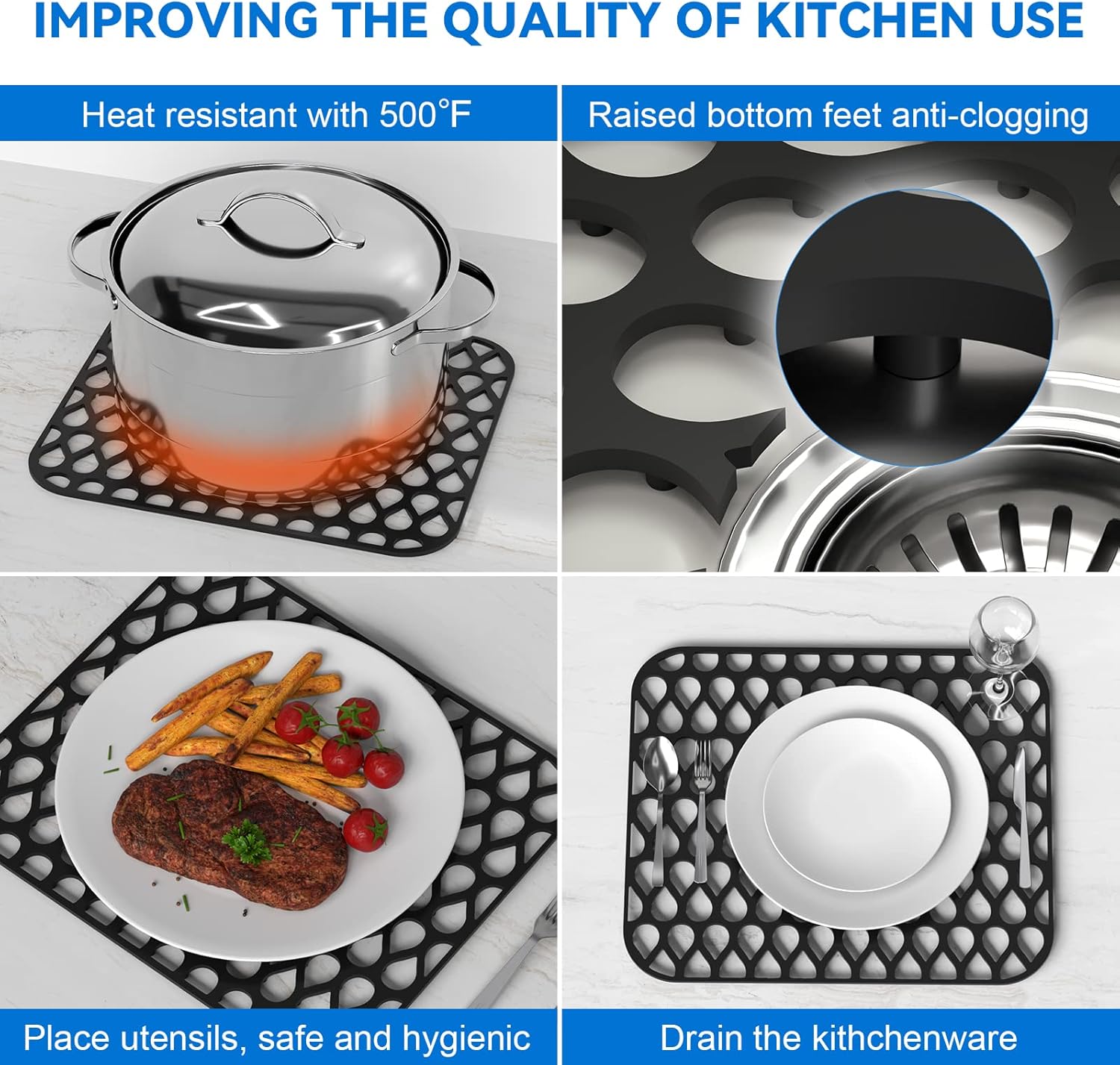 - Easy to Use: Our kitchen sink mats and protectors can handle up to 500F, heat-safe silicone for placing pots and pans in the sink directly from the stove, the superior finish looks sleek, modern, and stylish in your kitchen sink.