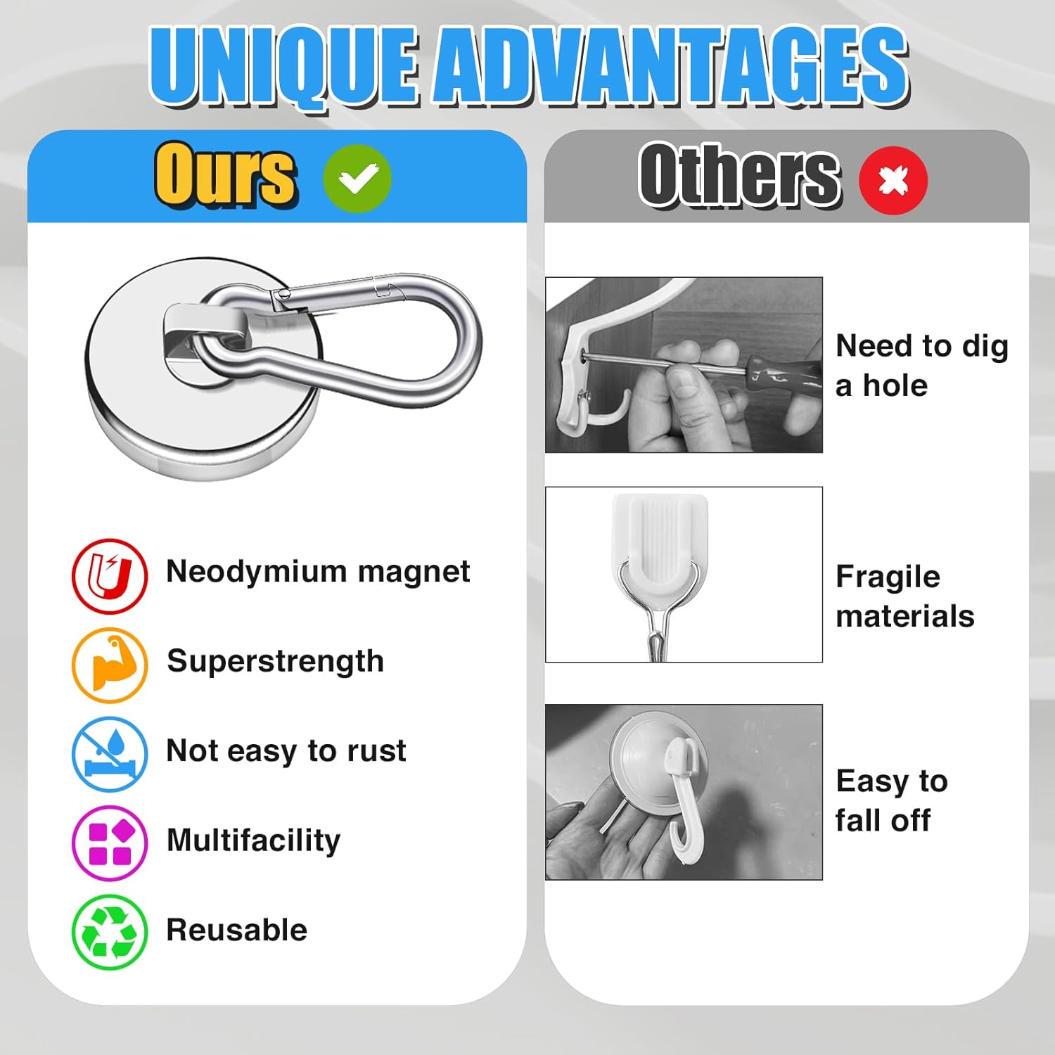 - 【Professional Brand】- VSKIZ magnetic wall hooks are produced in accordance with the ISO 9001 quality system, ensuring high standards of manufacturing. We are professional magnetic hooks seller, and you can find any magnetic product in our store. If you are interested in our magnetic carabiner hooks, please feel free to contact us at any time.