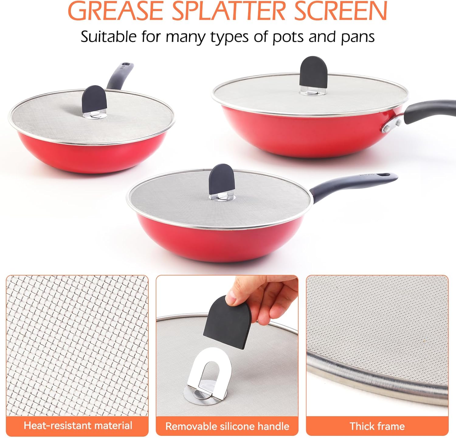 - [Not more splatter messy] - Our frying pan splatter guard effectively prevents grease and oil from splashing and with a clean and safe cooking experience, also with our splatter guards for frying for keeping your stovetop and kitchen walls free from splatters