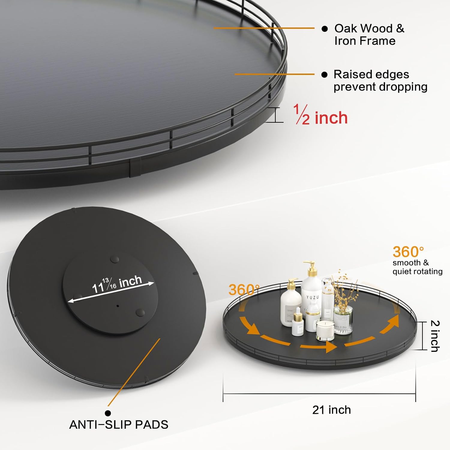 21" Oak Wooden Lazy Susan Turntable for Dining Table, Extra Large Round Lazy Susans Organizer for Kitchen Countertop Charcuterie Boards Cheese Board Organization and Storage Black Home Decor