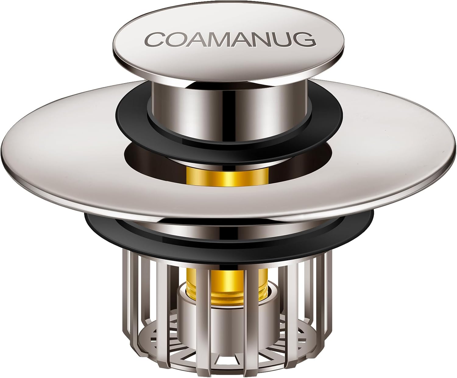 - ·Versatile Stopper with Strainer: The COAMANUG Upgraded Pop-Up Tub Stopper with hair trap can stop drainage to fill the tub or be popped up for draining, while effectively capturing hair and debris to prevent drain clogs. A COAMANUG Pop-Up Stopper with a built-in shower drain hair catcher resolves tub drainage issues.
