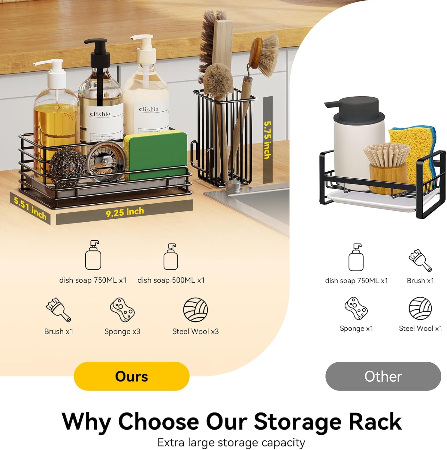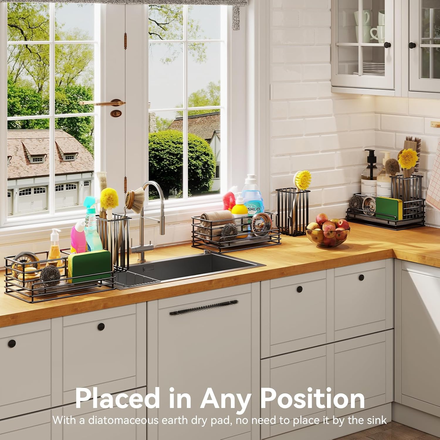 - Anti Slip Sink Rack: Our sink caddy will not slide and can be fixed for a long time without worrying about the sliding and stability of this kitchen sink storage rack.