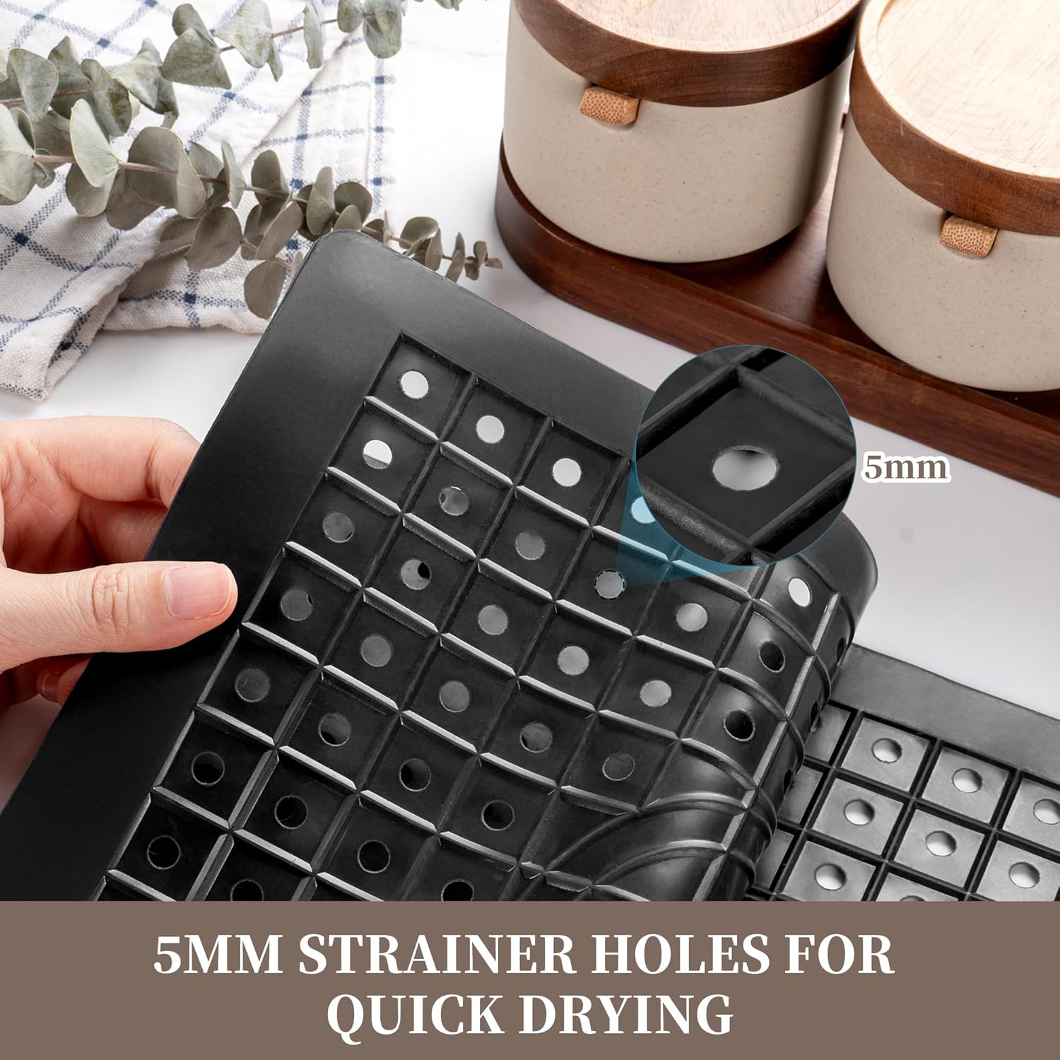 - 【Effective Water Drainage】 This sink mat features numerous 5mm drainage holes, ensuring excellent air circulation. These holes allow the mat to quickly drain surface water, effectively preventing puddles and keeping it dry. This design not only enhances convenience but also helps maintain the cleanliness of the mat.