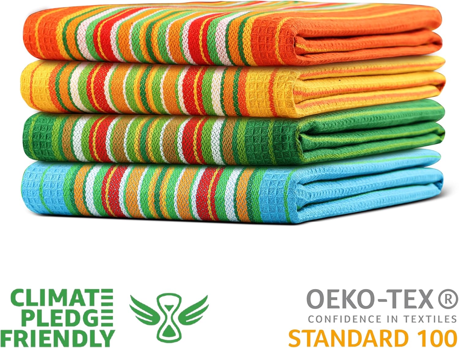 Urban Villa Salsa Stripe Kitchen Towels 100% Cotton Dish Towels for Kitchen Multi Color Highly Absorbent Multi-Purpose Waffle Dish Cloths for Cleaning Soft Hand Bar Towels 20x30 Inches (Set of 4)