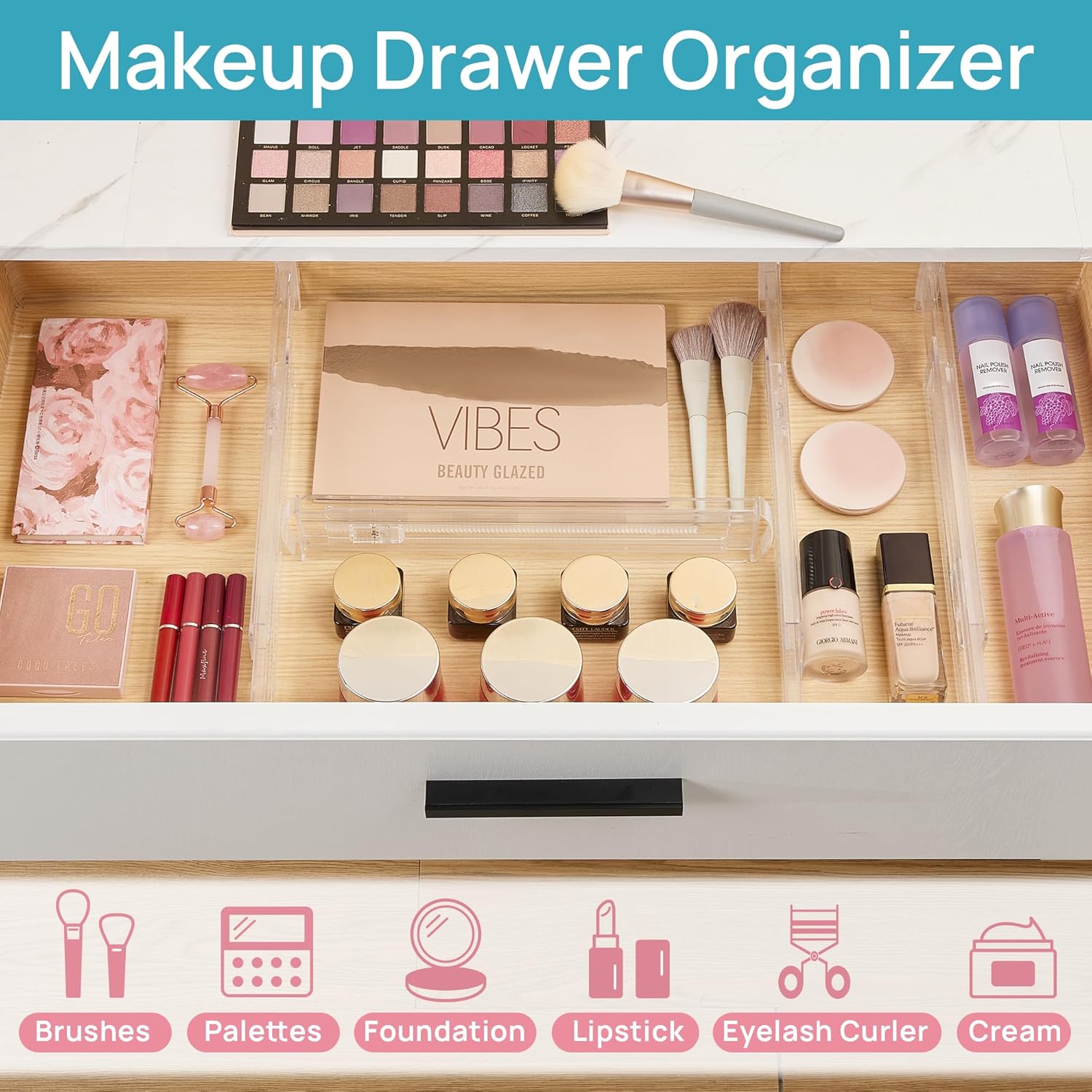 Vtopmart 8 Pack Shallow Drawer Dividers, 2.36" High 12.67"-21.14" Adjustable Expandable Kitchen Drawer Organizer, Clear Plastic Organizer Separators for Flatware, Utensil, Cutlery, Underwear, Clothes