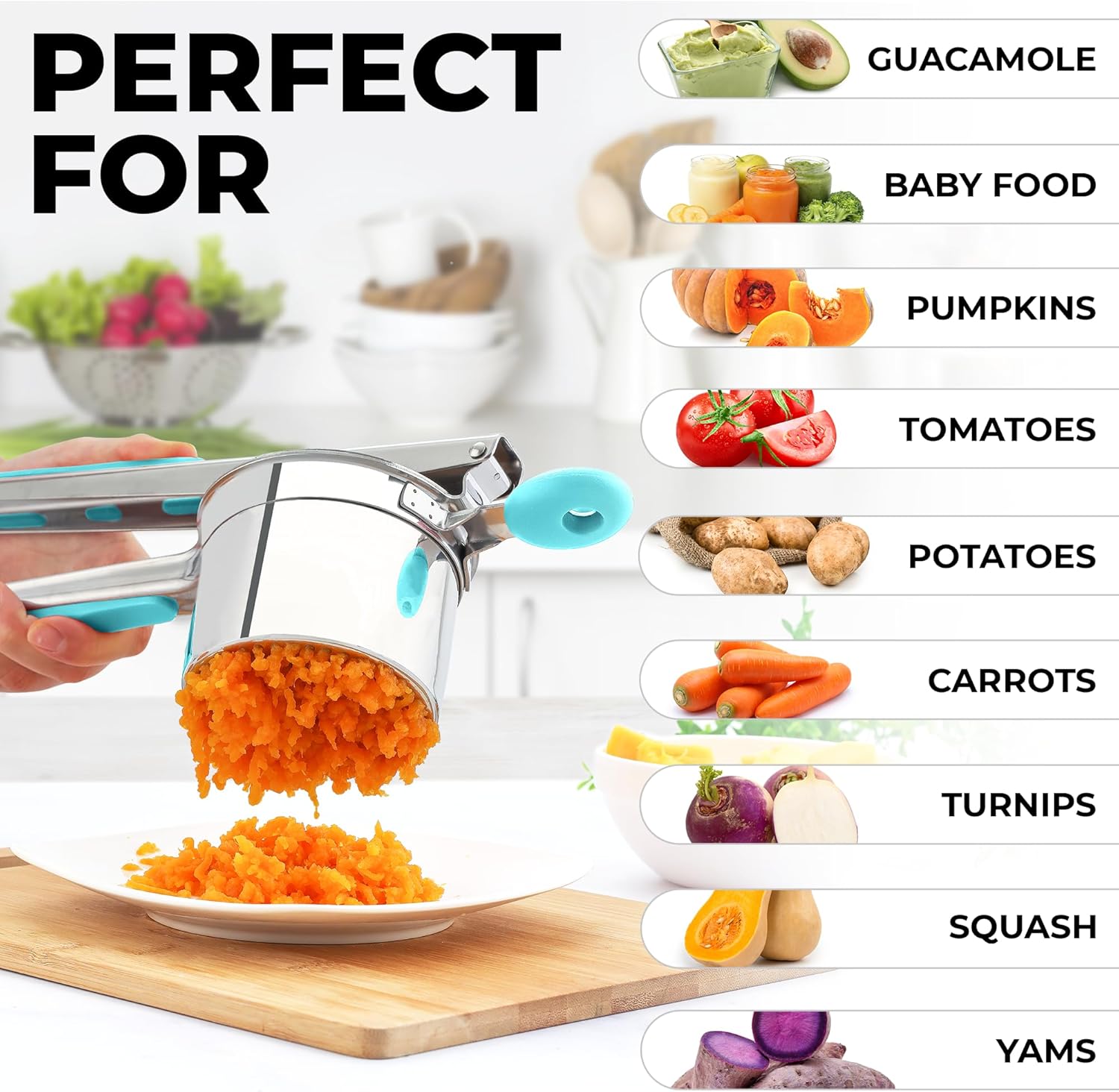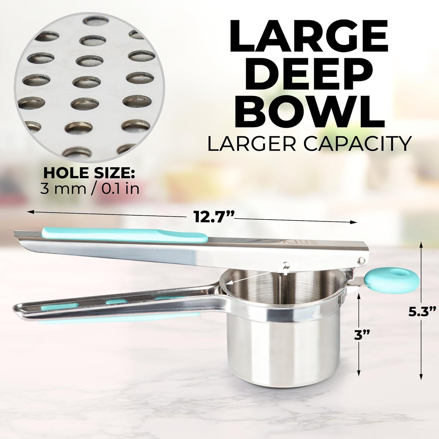 Zulay Kitchen Premium Large 15oz Potato Ricer, Heavy Duty Professional Stainless Steel Potato Masher and Ricer Kitchen Tool, Press and Mash Kitchen Gadget - Turquoise