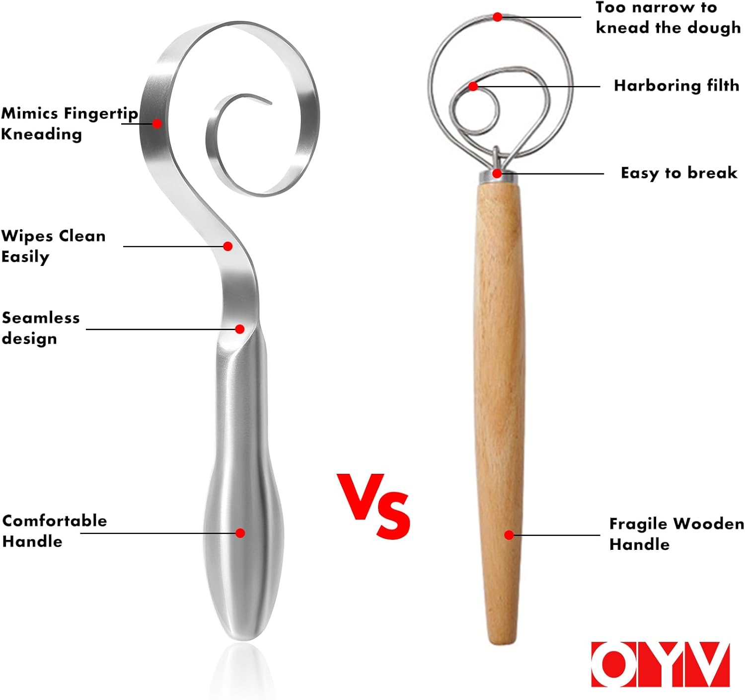 - Efficient Mixing: Mixes dough 2.5 times faster than traditional bread dough whisks, saving you time and effort. The unique design prevents dough from sticking, making clean-up a breeze with just a wipe
