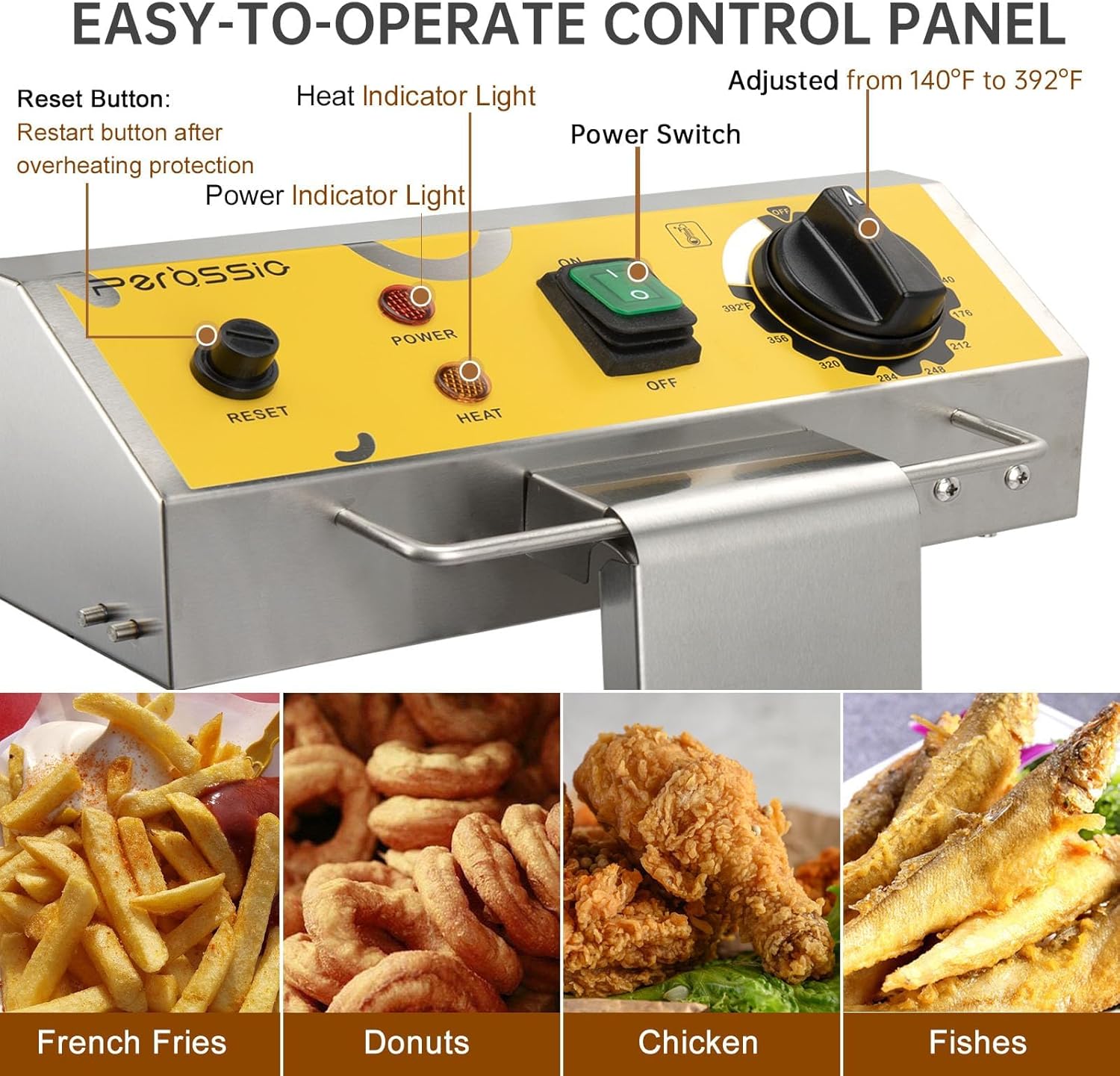 - Precise Temperature Control - Powerful countertop fryer, with temperature adjusted from 140°F to 392°F (60°C-200°C). An installed guard plate effectively balances oil temperature and ensures food is fried evenly