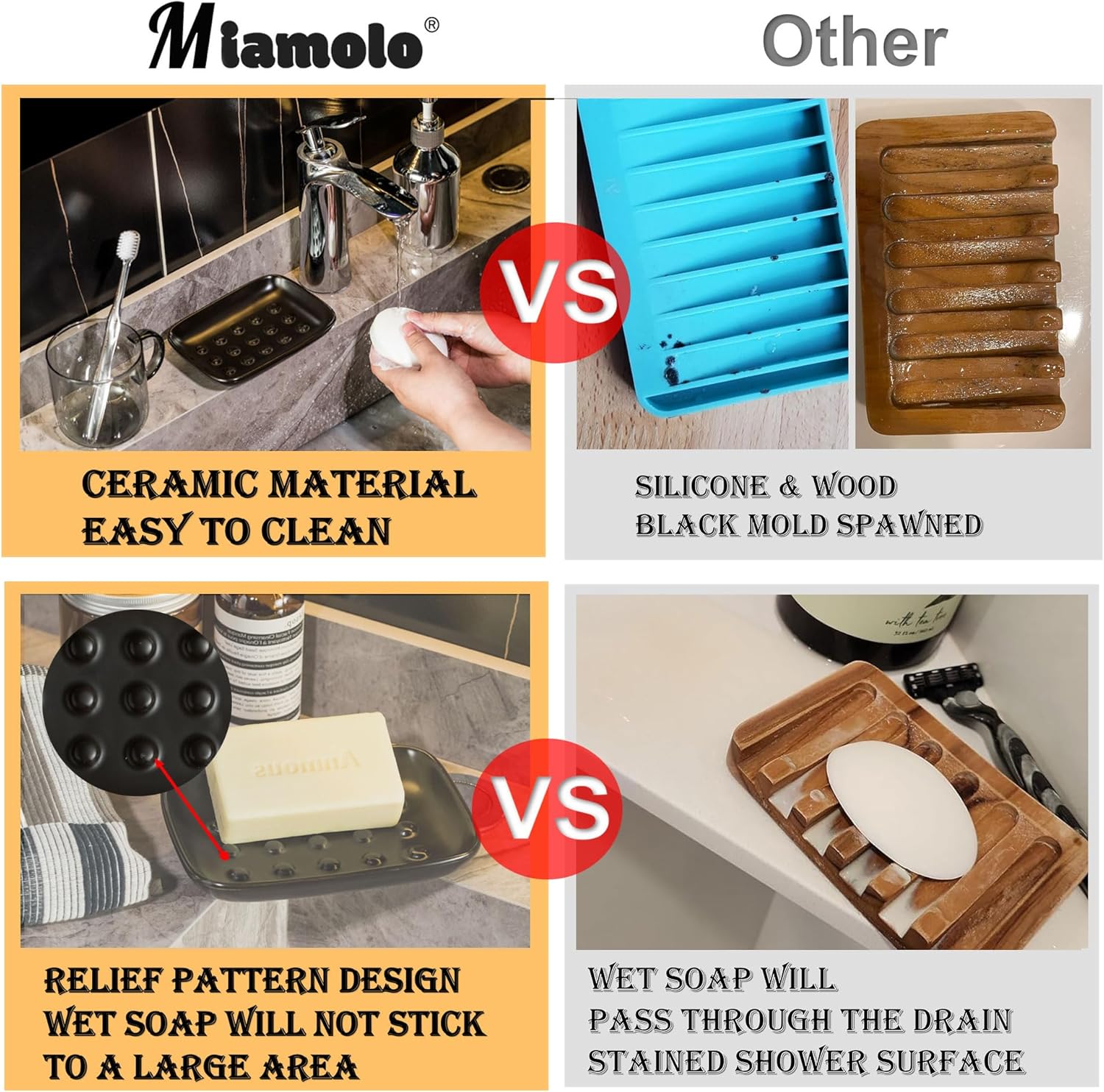 - High Quality Ceramic: This soap dish is made of high-quality ceramic material, ensuring that it is sturdy and easy to clean. The ceramic texture not only gives the bathroom soap dish an elegant look, but also ensures that it can withstand the wear and tear and scratches of everyday use