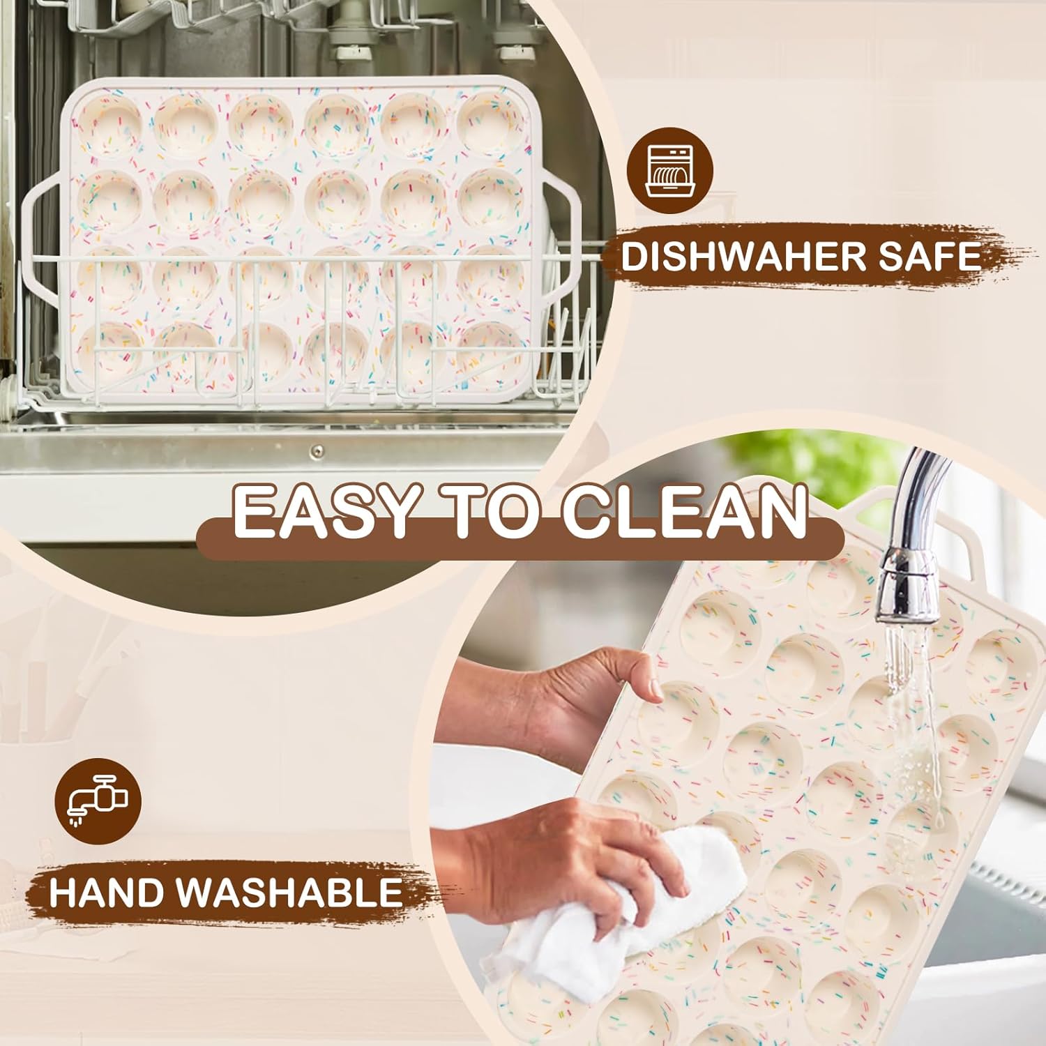 - Nonstick and Easy Removal: The silicone muffin tin is equipped with a non-stick coating that enables effortless release of your baked goods. Make muffins and cupcakes pop out easily. And easy to clean