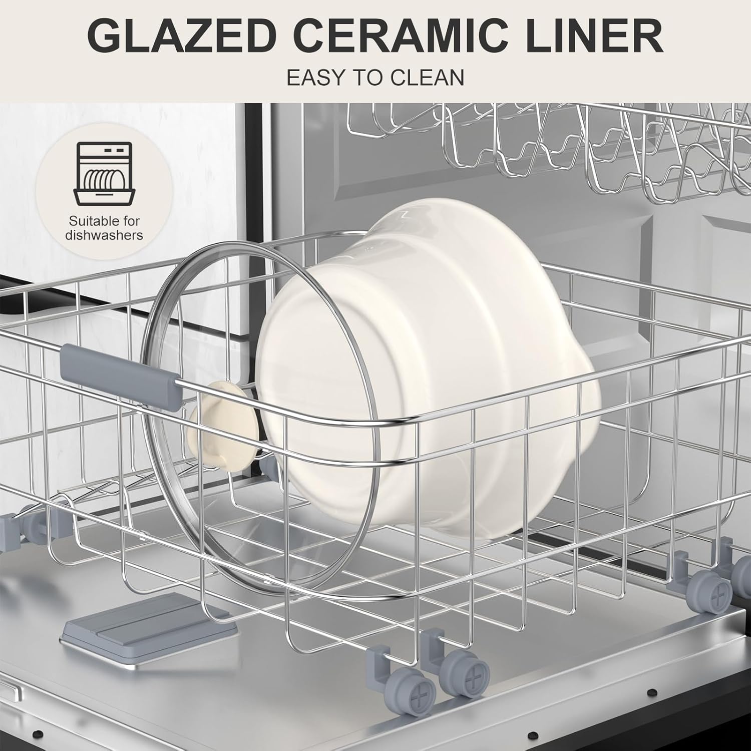 - DISHWASHER SAFE - Easy cleaning mirror stainless steel made and dishwasher safe removable ceramic pot and glass lid are convenient to be cleaned in dishwasher with warm soapy water after use. The stainless steel heating base can be wiped clean with a damp cloth to maintain its original appearance. 100% REFUND/REPLACEMENT - MAGNIFIQUE provides a one-year limited warranty. If you encounter product malfunctions during this period, please contact us.