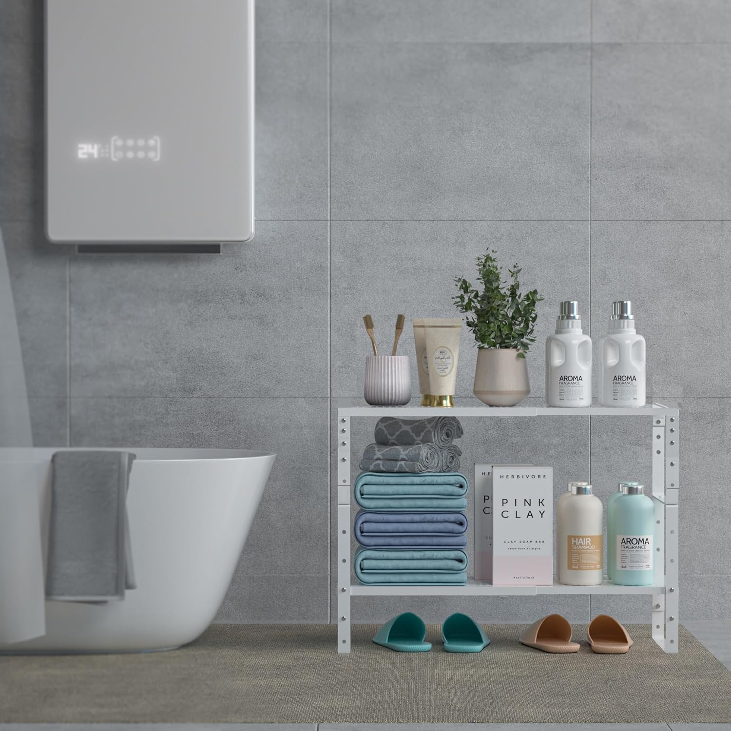 Expandable,Adjustable & Stackable Spice Rack, Cabinet Kitchen Countertop Shelf Organizer,Metal Pantry Storage Shelves - Space-Saving Storage Solution(2Packs/White/Medium)