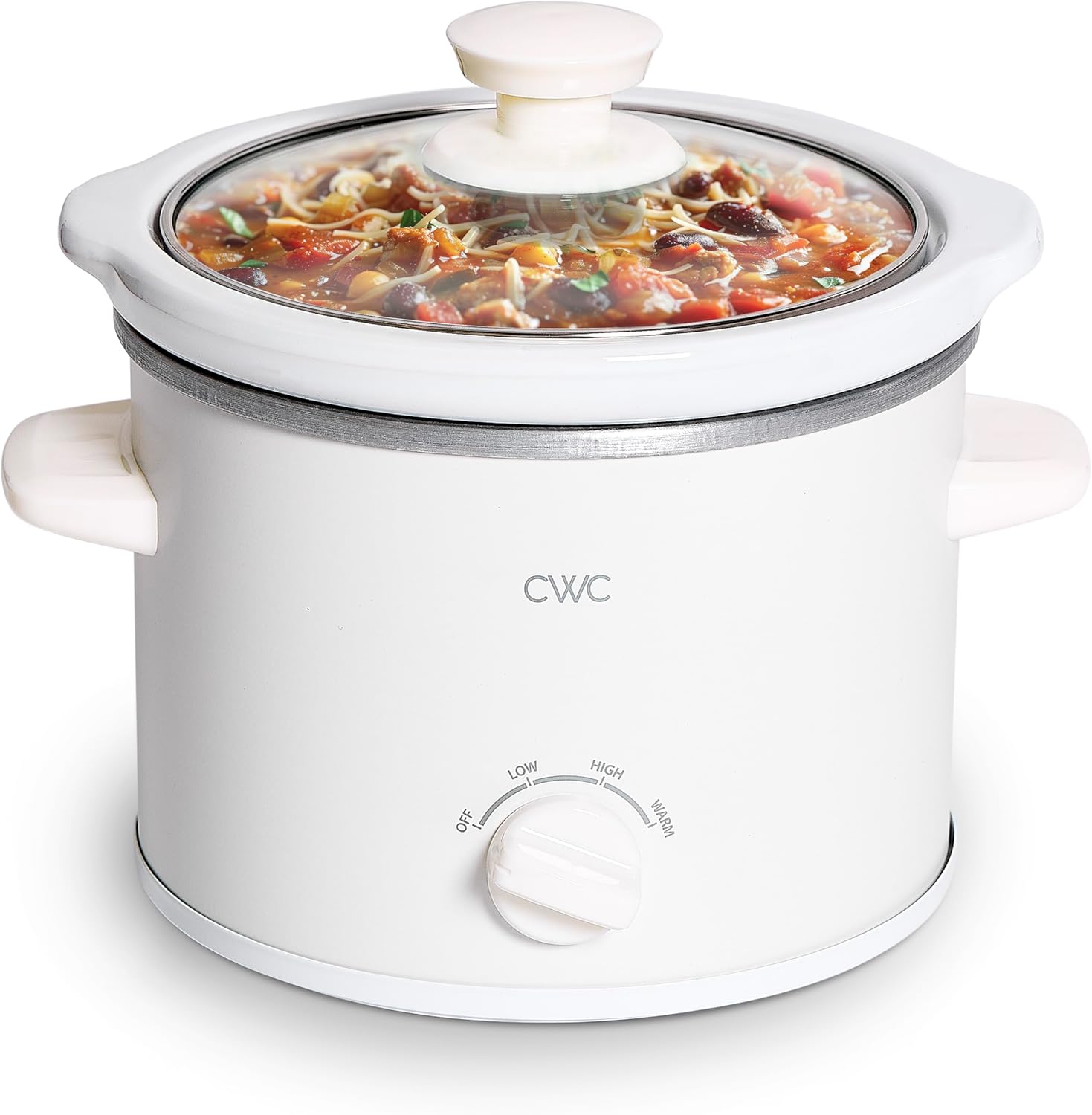 COOK WITH COLOR 2QT Mini Electric Round Slow Cooker - Adjustable Settings, Removable Stoneware Pot, Tempered Glass Lid, Dishwasher Safe, Cool-Touch Side Handles, Cream