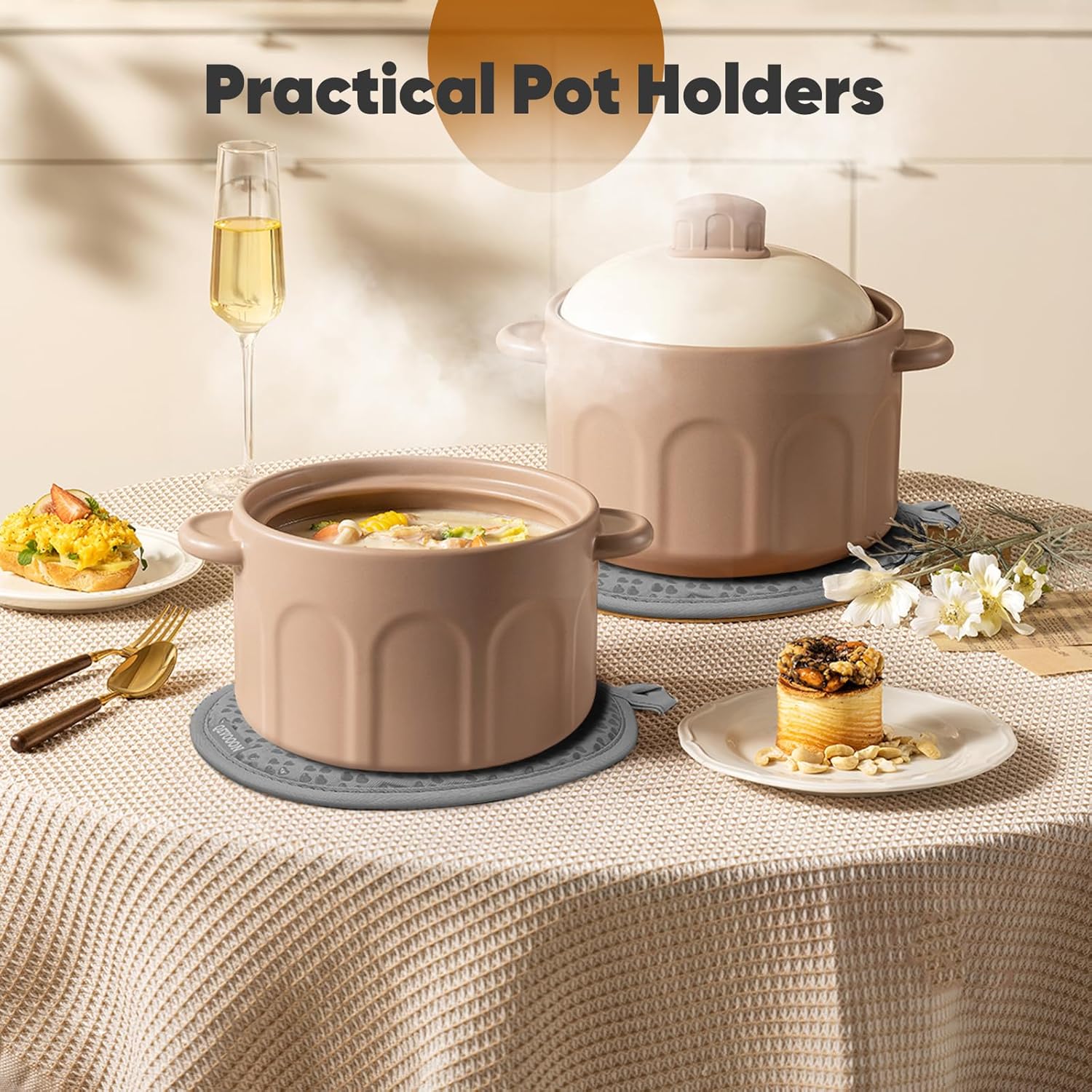Oven Mitts and Pot Holders 4 Sets, Heat Resistant 500 ℉ Oven Mitt and Pot Holder,Oven Glove&Potholders with Non-Slip Silicone Surface,Kitchen Essentials for Cooking/Baking/BBQ-Grey