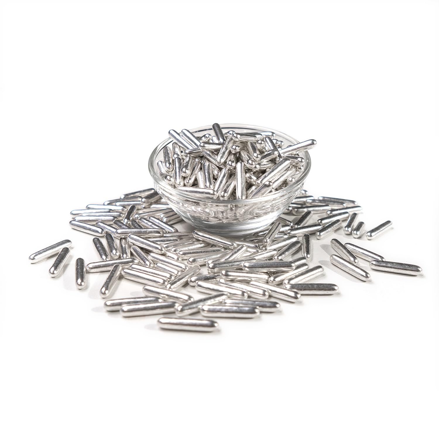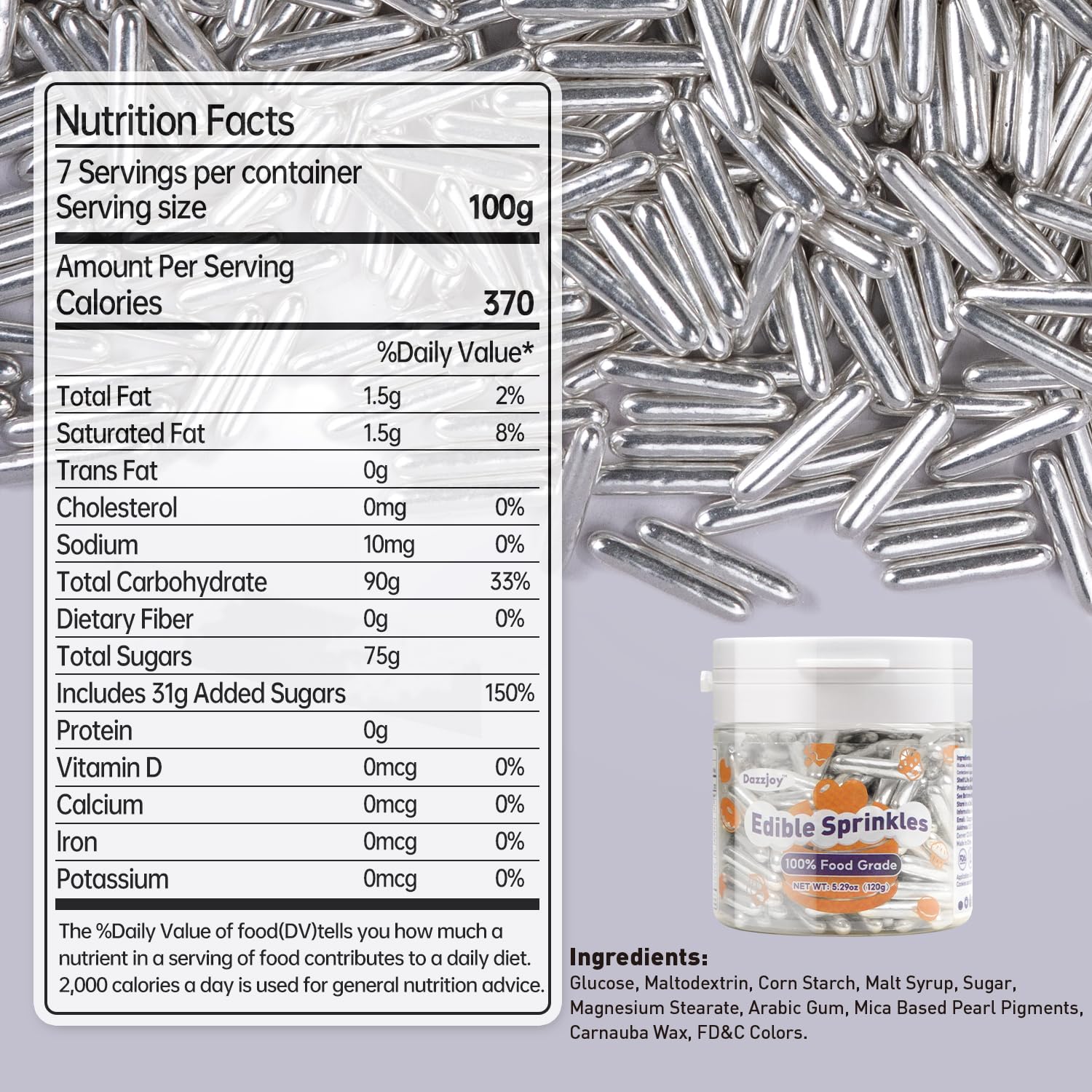 Dazzjoy Silver Rods Sprinkles, Edible Sugar Sprinkles, 120g/4.23oz, Cupcake Toppers, Cake Decorations, Ice Cream, Wedding Party Valentines Easter Supplies