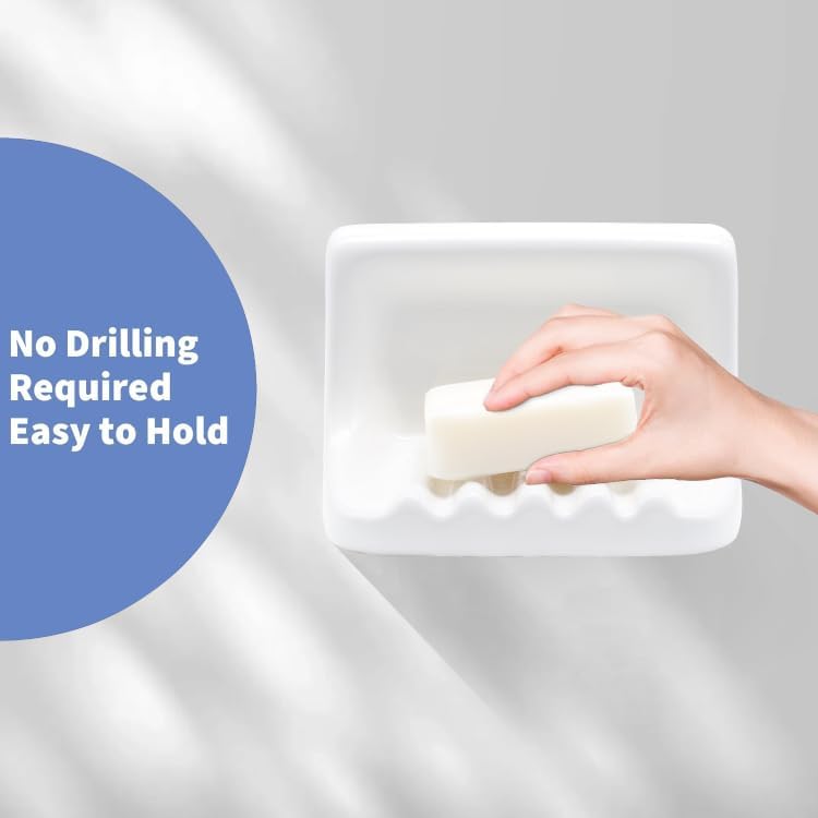 - Bathroom Accessory Ceramic Soap Dish Soap Holder for Shower Wall,Dimension: 4-3/4"(H) x 6-1/2"(L) x 3-3/4"(W).