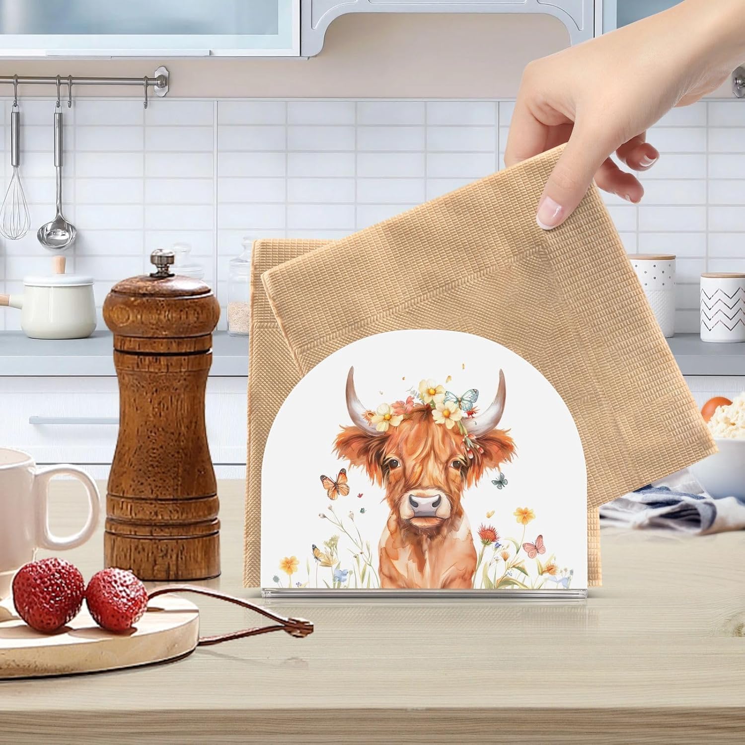 Highland Cow with Butterflies Napkin Holder for Table Paper Napkins Holder Acrylic Tissue Dispenser Kitchen Dining Room Bathroom Party Car Decor
