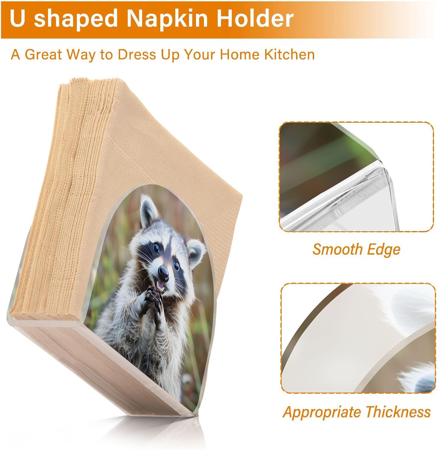 Raccoon Cute Print Napkin Holder for Table Paper Napkins Holder Acrylic Tissue Dispenser Kitchen Dining Room Bathroom Party Car Decor