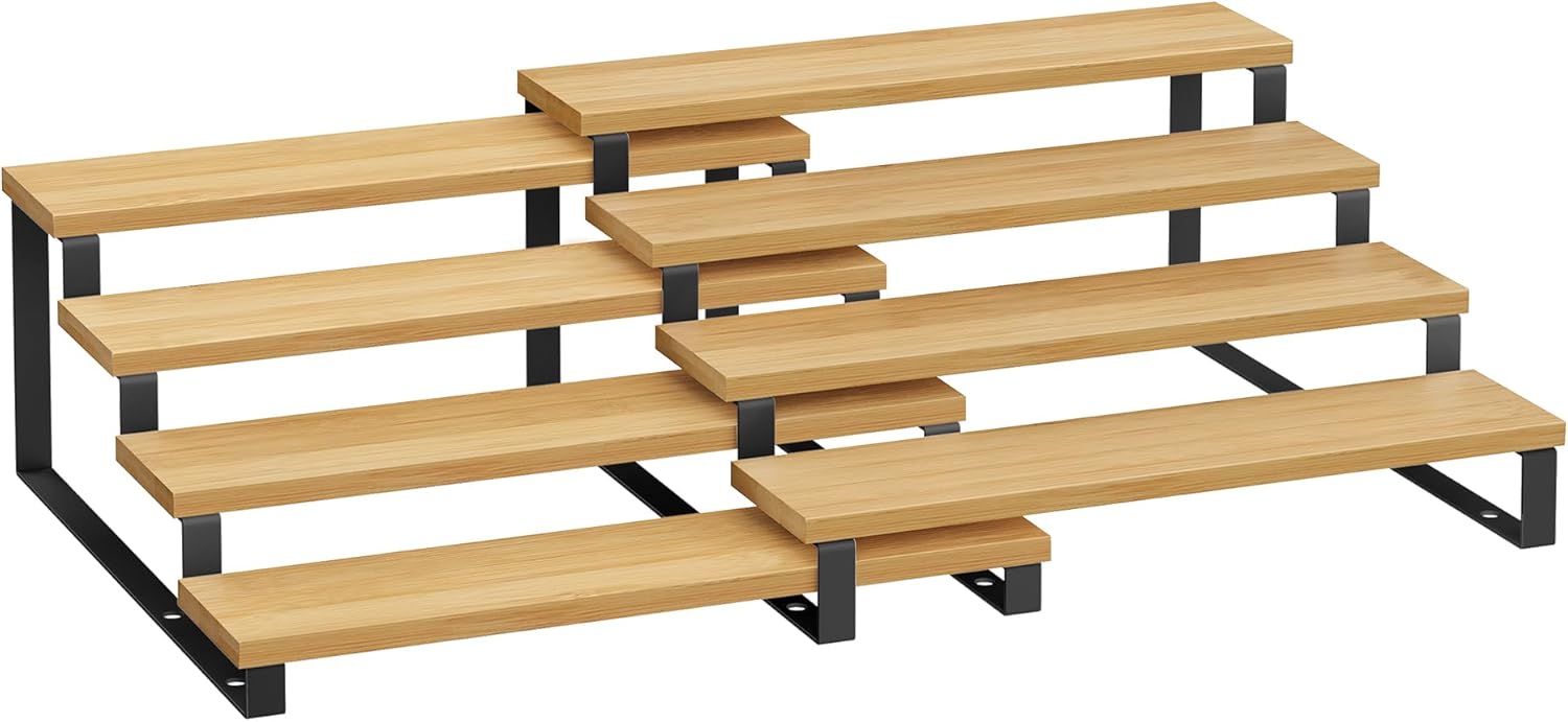 - 【FIND AT A GLANCE】With its specially designed tiered structure and each tier being 3" deep, this display riser ensures all your spice jars and items are clearly visible and easily accessible, preventing messes and keeping your kitchen organized
