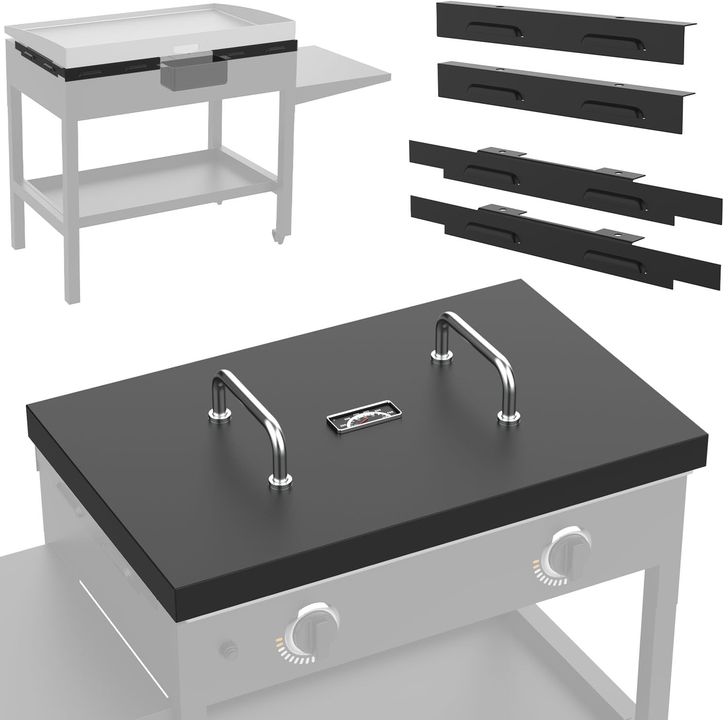 - 【Replace for Blackstone 5003 Hard Cover with Thermometer】Made of heavy-duty steel and coated with high-temperature resistant powder, our 28 inch Griddle Hood ensures durability and longevity. The hard lid also features a heat-resistant grip that is safe to touch. Thermometer to better check if the temperature inside the grill is at the temperature of the food being cooked