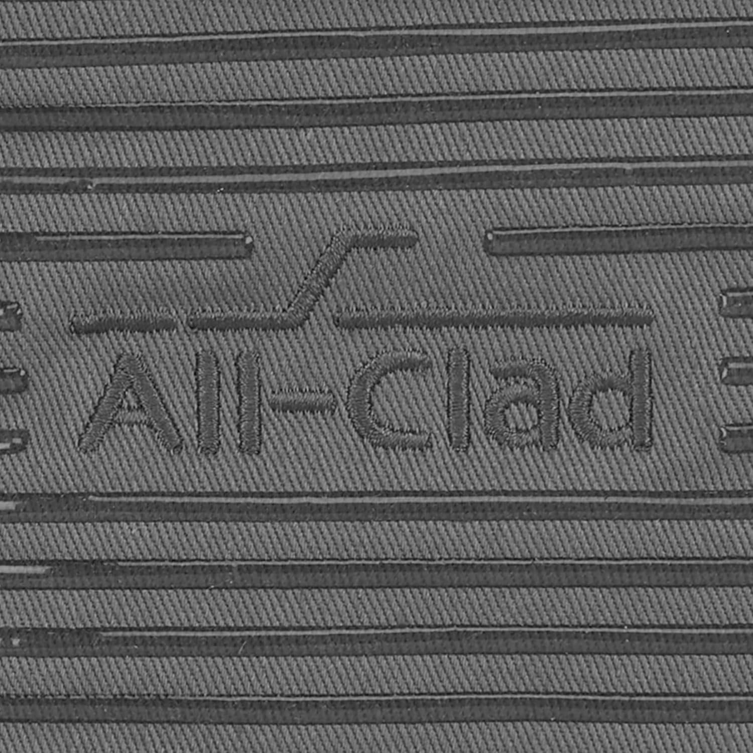 - EASY TO CARE FOR. Designed with heavyweight, stain-resistant twill, All-Clad silicone oven mitts and pot holders are entirely machine washable. Machine wash cold with like colors on gentle cycle, only non-chlorine bleach when needed and lay flat to dry. Fabric is stain resistant.