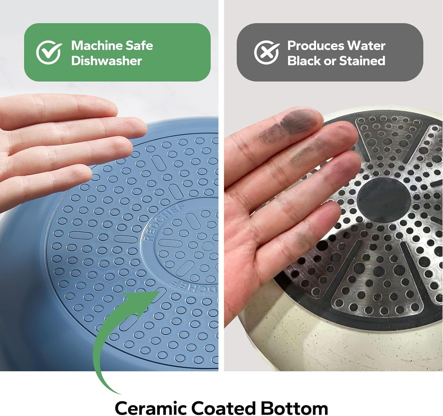 Redchef Non Stick Ceramic Frying Pan Set, Non Toxic Ceramic Pans for Cooking, 8" 9.5" 11" Skillet Set, No PFAS & PTFE & PFOA with Stainless Steel Handle, Dishwasher & Oven Safe Max up to 842°F (Blue)