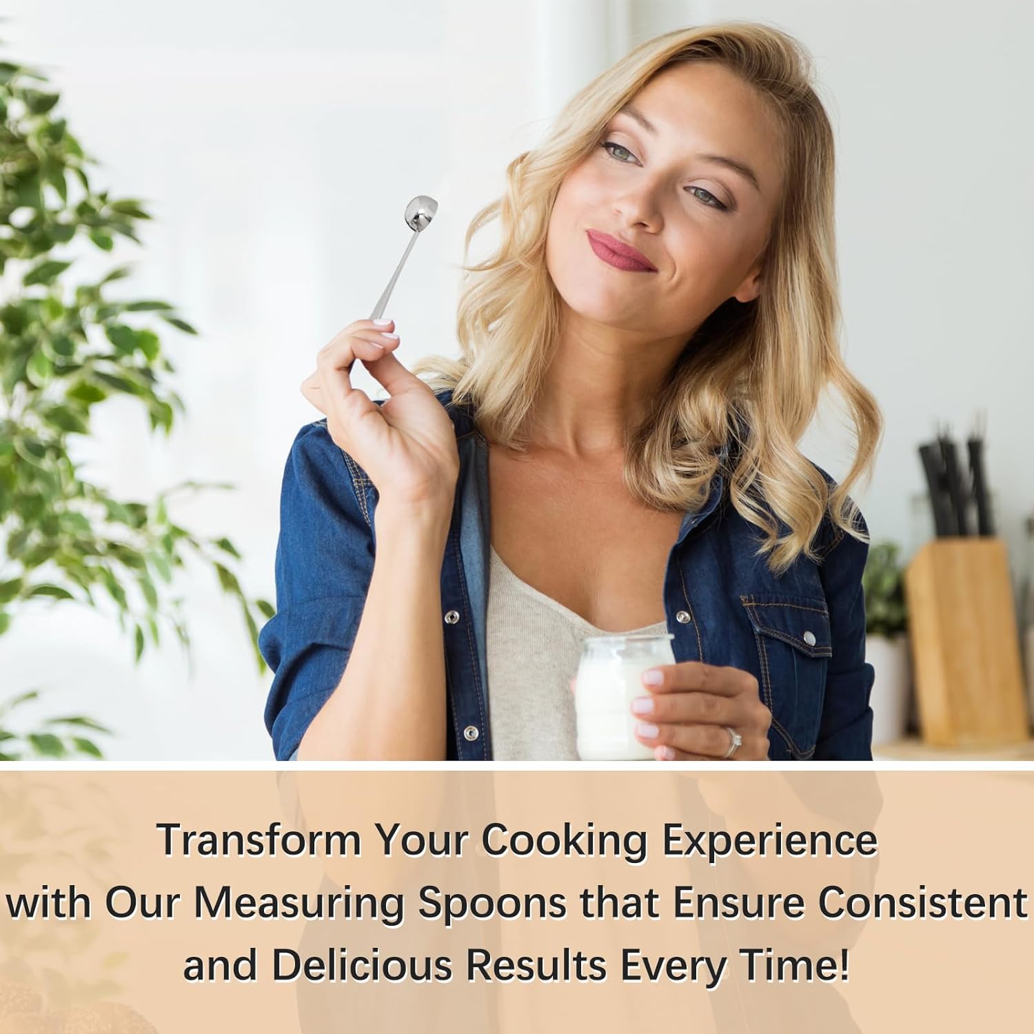 - 【Make Life Better】 We know how important a good stainless measuring spoons is to enhance the cooking experience. We have made a lot of efforts and attempts to come up with a product that we are proud of. We are confident that the long handle measuring spoons will live up to your expectations