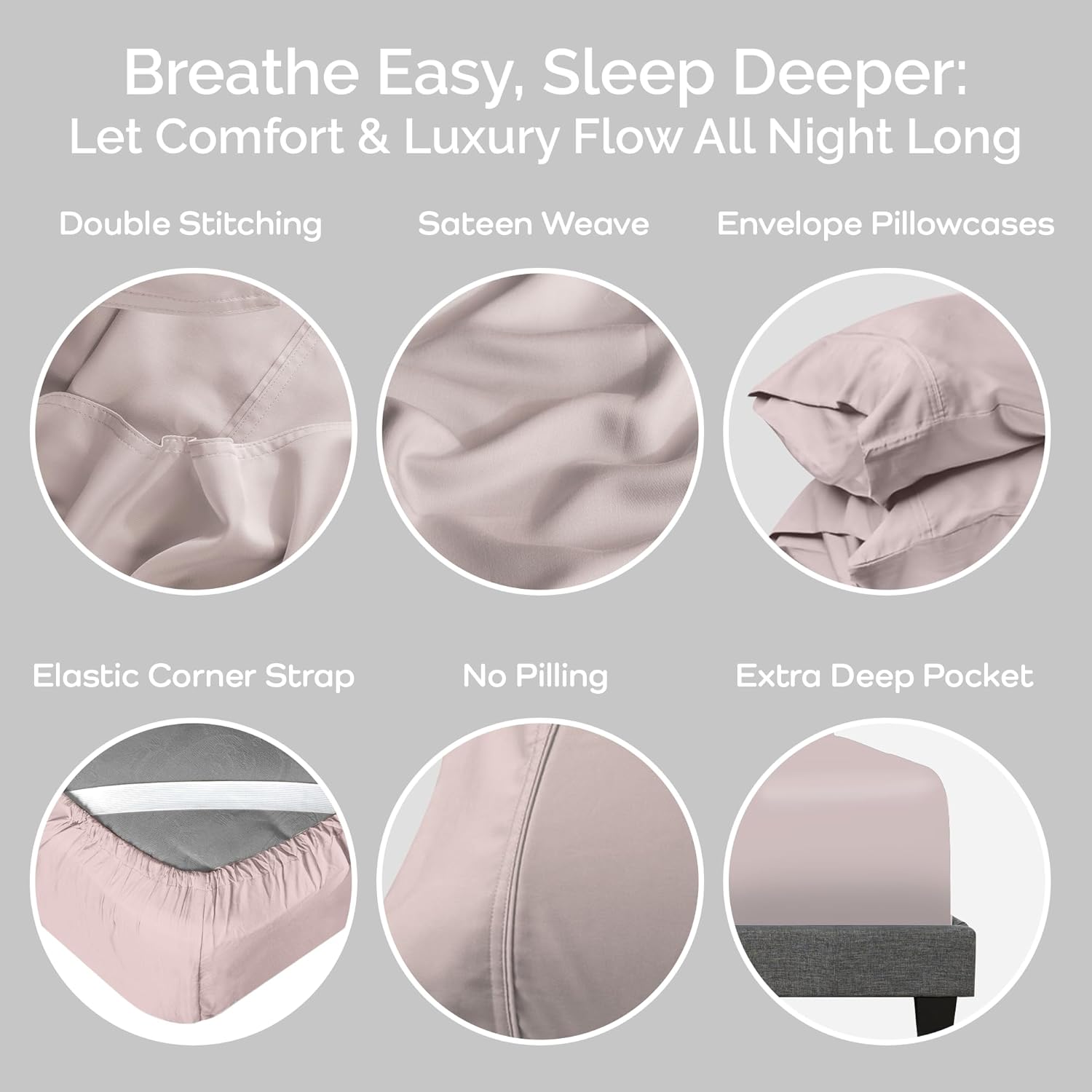 100% Viscose from Bamboo Sheets Queen Size, Super Soft Bedding Set, 4PC Cooling Sheets for Hot Sleepers, Vegan Silk Moisture Wicking, Organically Grown Bedsheet, Blush - 60" x 80"