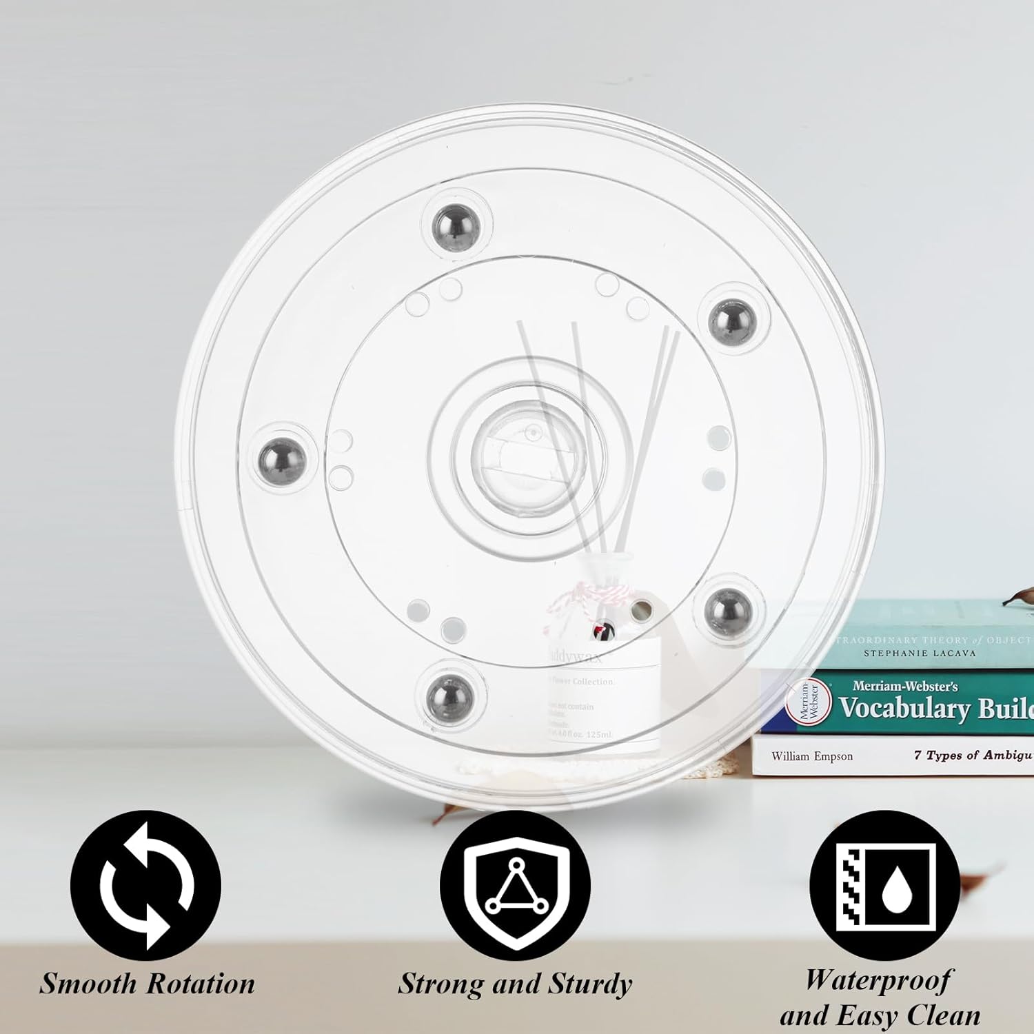 - Long-lasting: Our round countertop lazy susan turntable is made of durable acrylic with steel ball bearings for long-lasting rotation. Small lazy susan 4 inch with clean and modern style fits any corner of your home