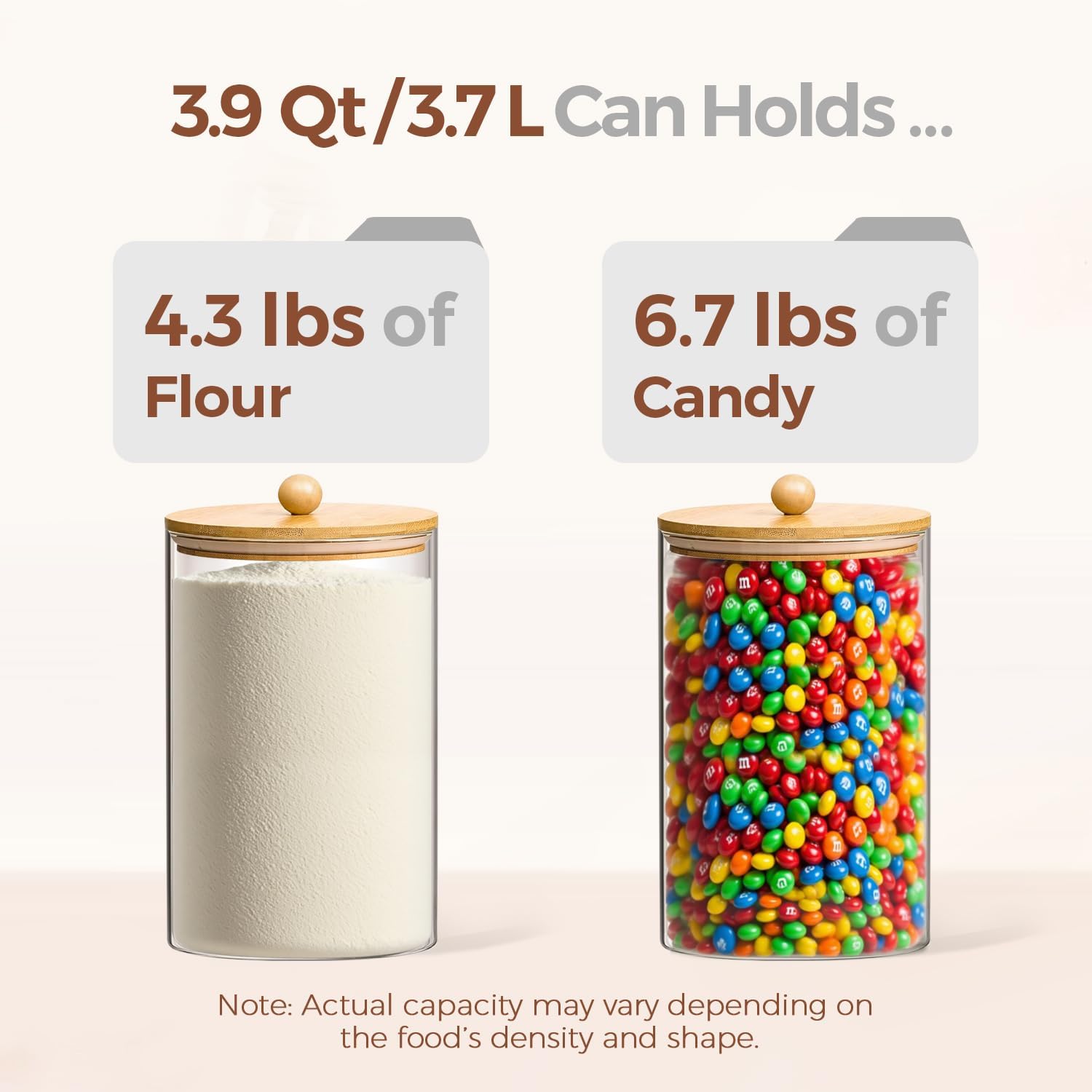 - Durable Glass Canisters: Made from premium borosilicate glass, our 3.9Qt. flour sugar storage containers ensure durability; The food-grade silicone seal guarantees freshness, making it an ideal choice for preserving cereal and other dried foods