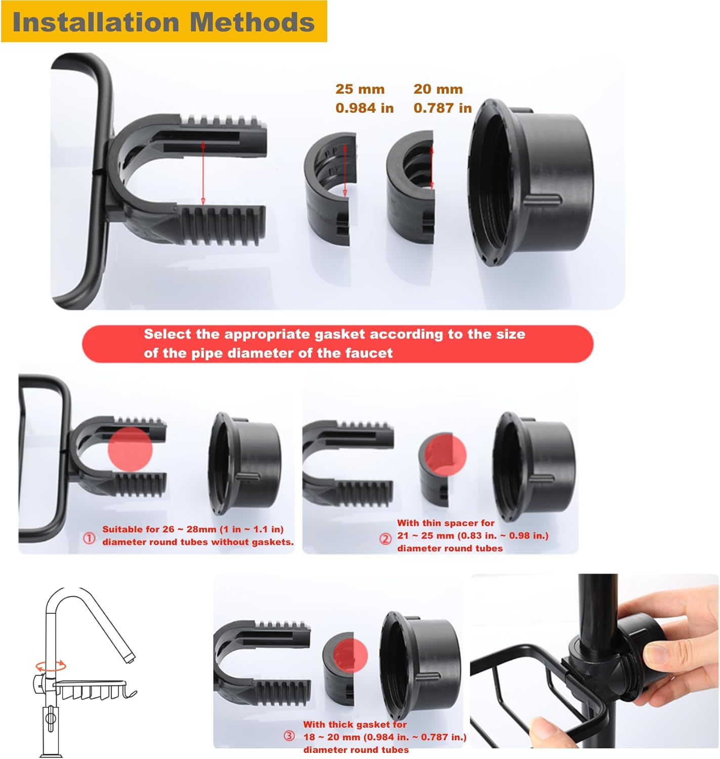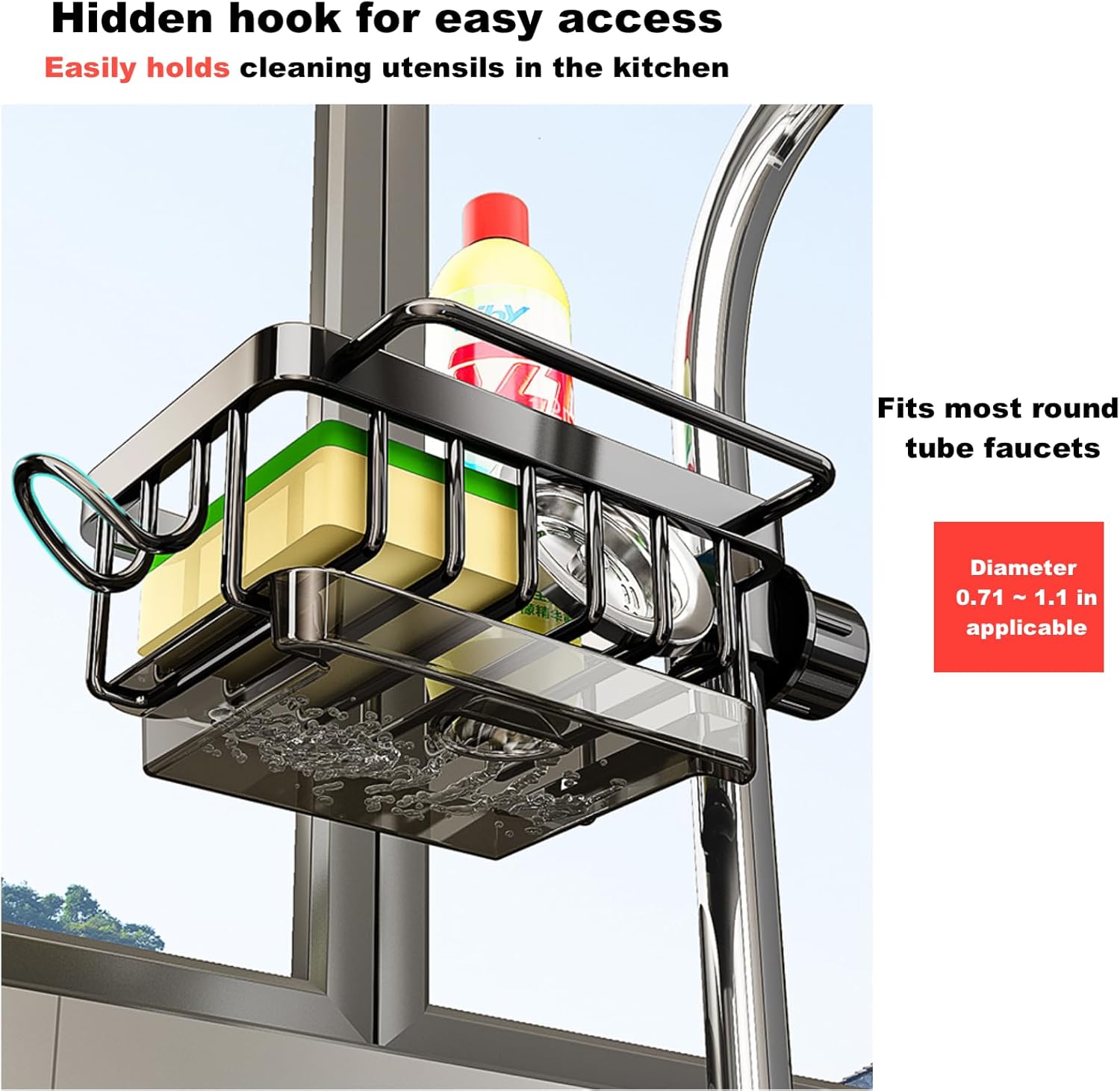 - 【Rustproof and durable materia】Our kitchen sink organizer rack, which is waterproof, rust-proof, fingerprint-proof, solid and firm, and has high load-bearing capacity,crafted from premium space aluminum, offers optimal organization capabilities thanks to its robust load-bearing capacity and stylish design. Serving as a reliable assistant for your organization needs, it facilitates quick drying of your daily essentials.【⚠️Note:This kitchen sponge holder is only suitable for round faucets(pipes of 18-28 mm(0.7'' - 1.1'') outer diameter,Always measure your faucet/pipe dimensions before purchasing), not for square faucets.】