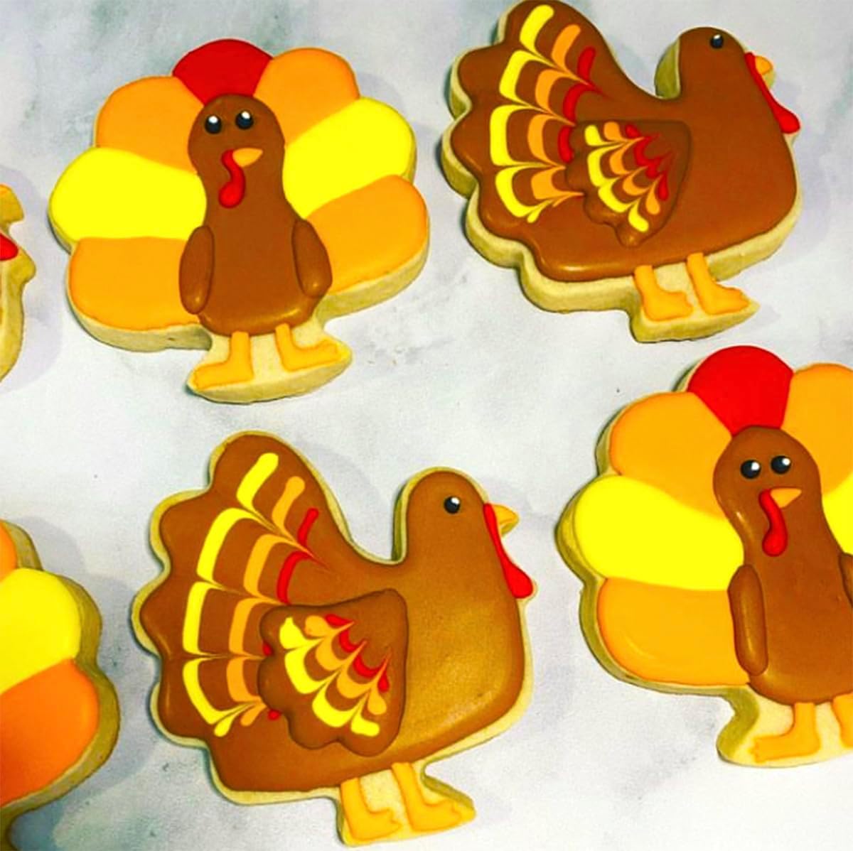 - 【Cute Shapes】: Our Thanksgiving cookie cutters set contains 5 cute shapes: turkey*2 (different shapes), maple leaf, acorn, pumpkin. Regular size, you can use them to cut cookies, dough, pancakes, fondant, corn cake, pumpkin pie... Give full play to your imagination, DIY your own dessert.
