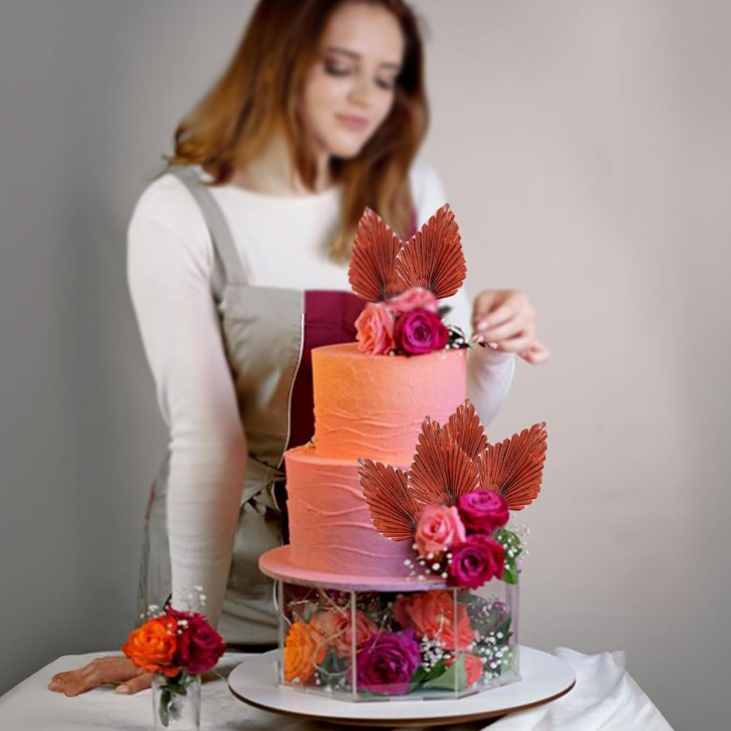 Gyufise 6Pcs Paper Palm Fan Cake Toppers Palm Spear Leaves Fan Cupcake Toppers Cake Insert Decorations Craft DIY Cake Bakeware Decoration for Birthday Wedding Party Supplies Light Rose Gold