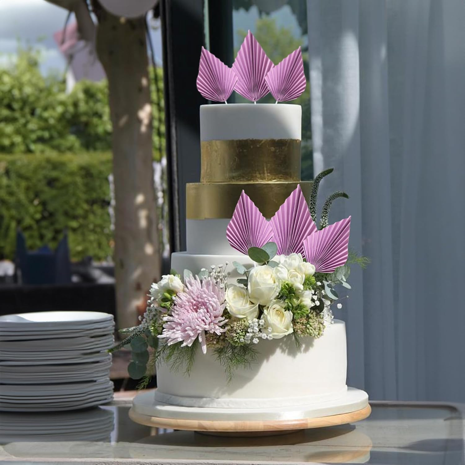 Gyufise 6Pcs Paper Palm Fan Cake Toppers Palm Leaf Fan Cake Topper Palm Spear Leaf Cupcake Toppers Cake Insert Decoration For Cake Decorating Diy Craft Project Home Wedding Party Supplies Purple