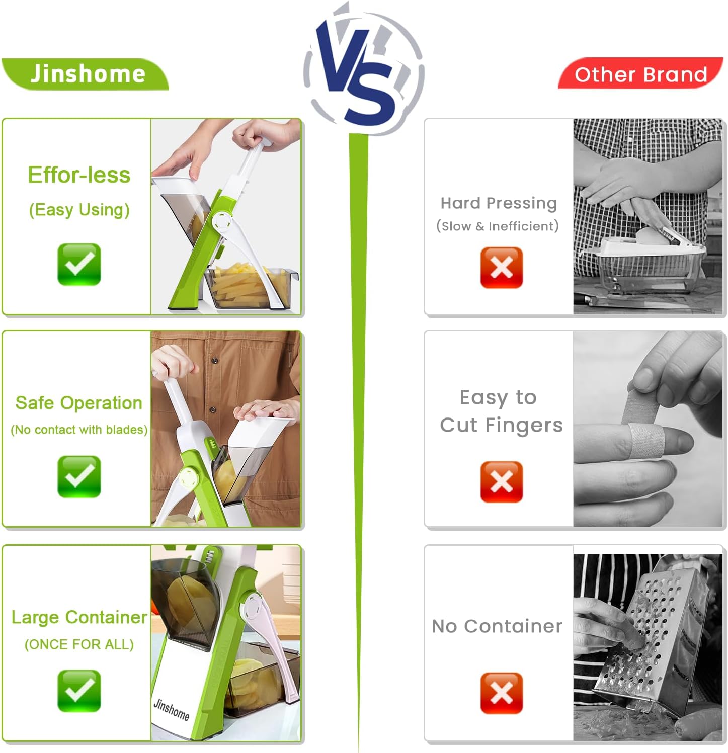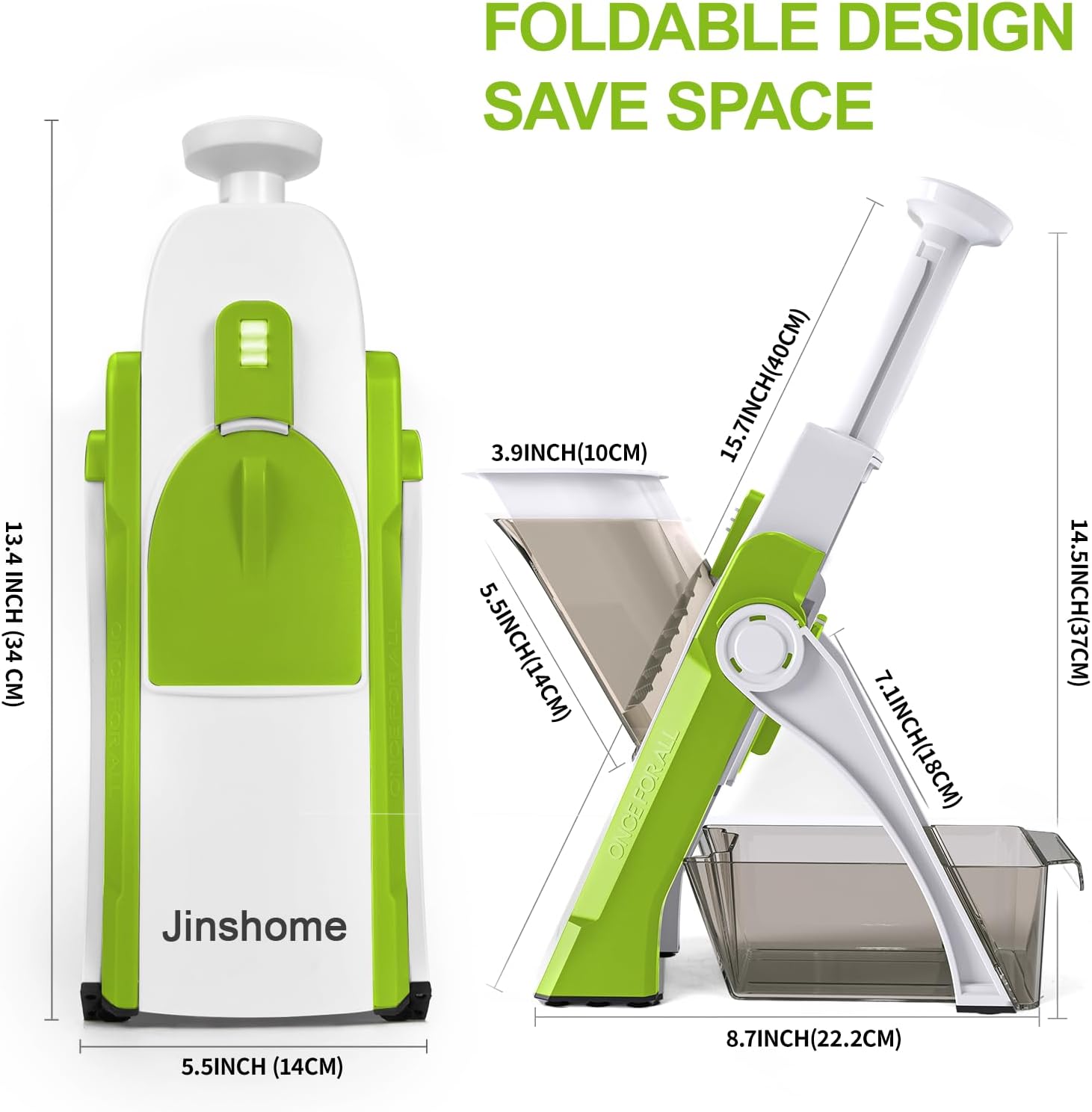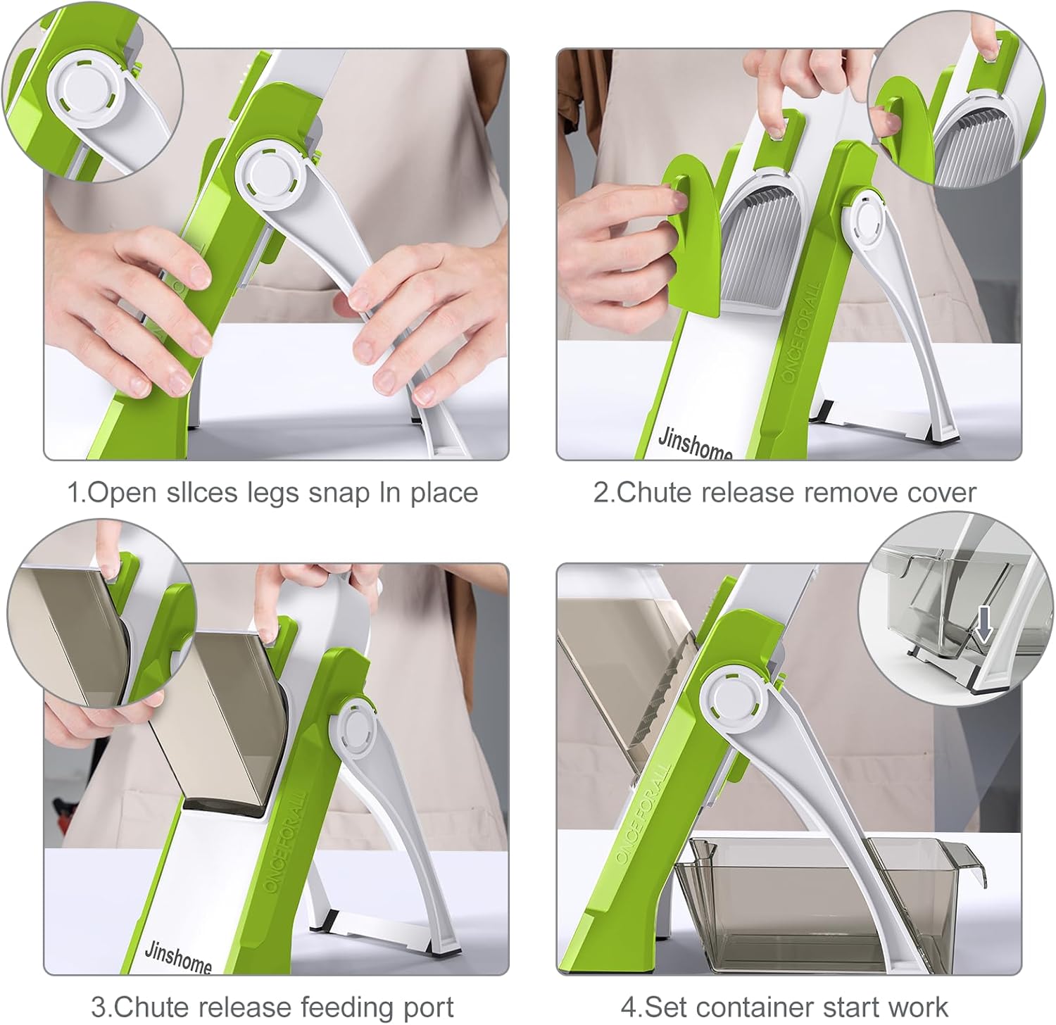 Safe Mandoline Slicer and Vegetable Chopper, Multi Potato Slicer for Kitchen, 4 Modes 100+ Presets Thickness Adjustable,(Green)